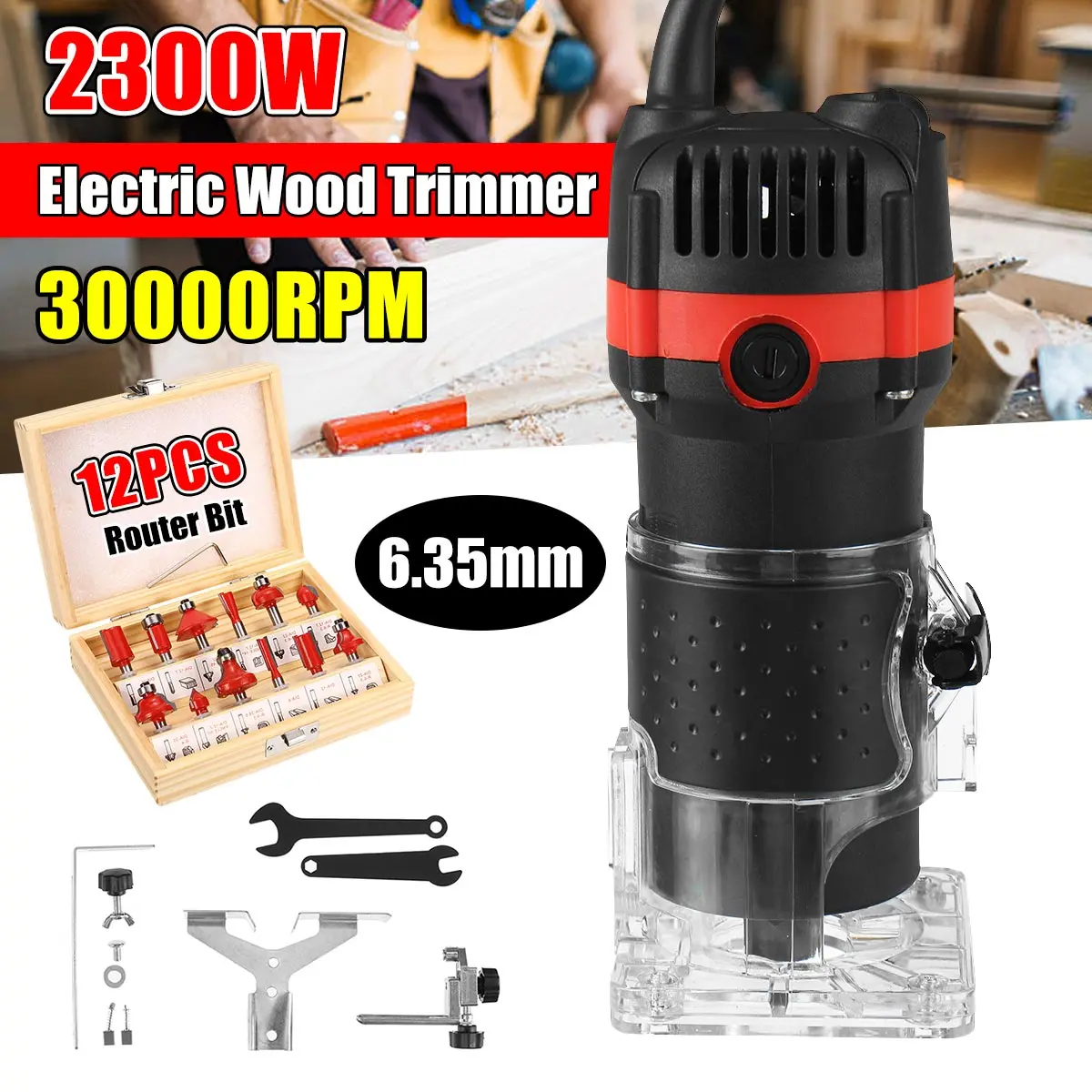 2300 Вт, 30000 обмин, деревянная электрическая ручная фреза, гравировка, обрезка, ручная фреза, набор столярных соединений
