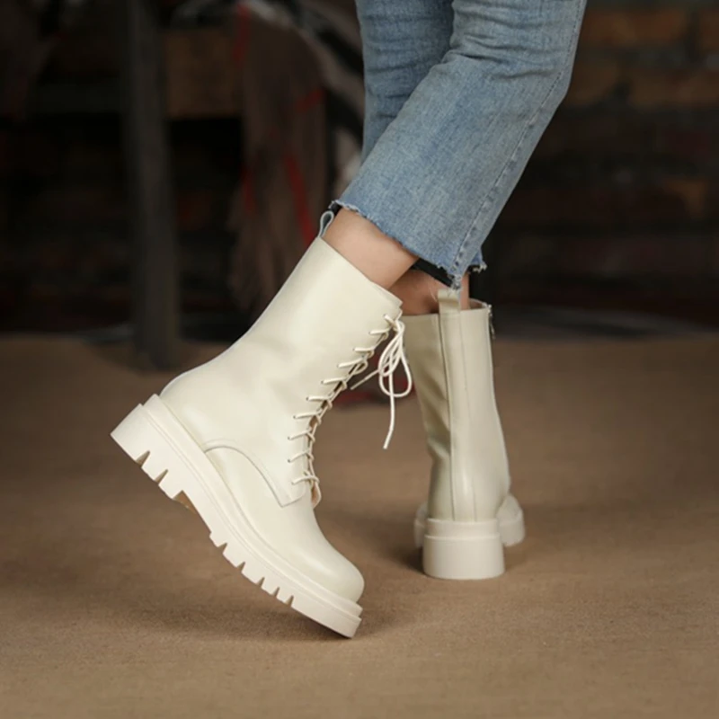 Зимняя женская обувь 2021, теплые кожаные ботинки с шерстяной искусственной кожей, массивные ботинки с круглым носком, черные зимние ботинки для женщин, меховые ботинки