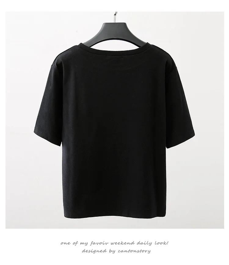 Футболка большого размера, лето 2021, черная, модная летняя женская...