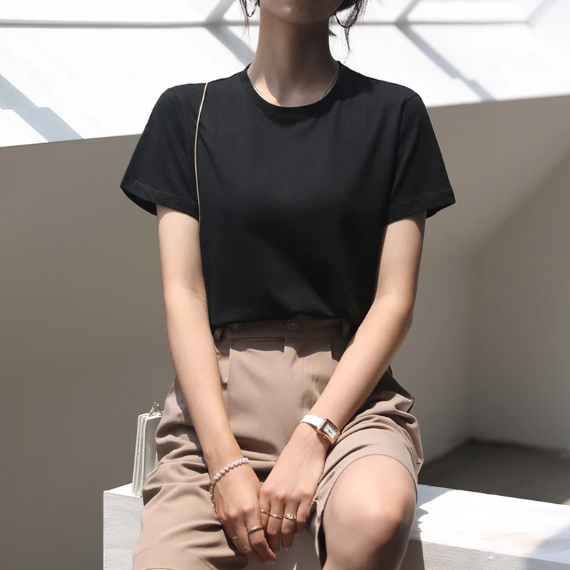 Женские топы, Однотонная футболка из чистого хлопка для женщин, лет...