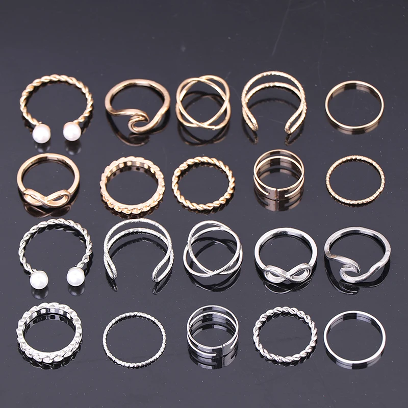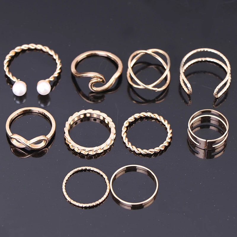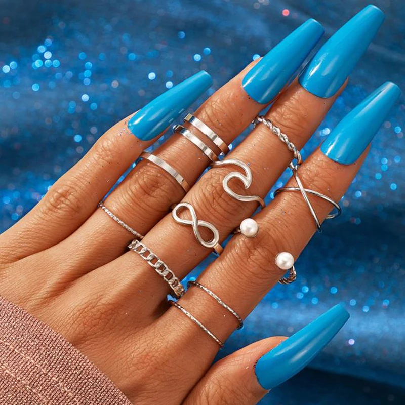 Кольца с жемчугом и волной для женщин 10 шт., набор простых модных ...
