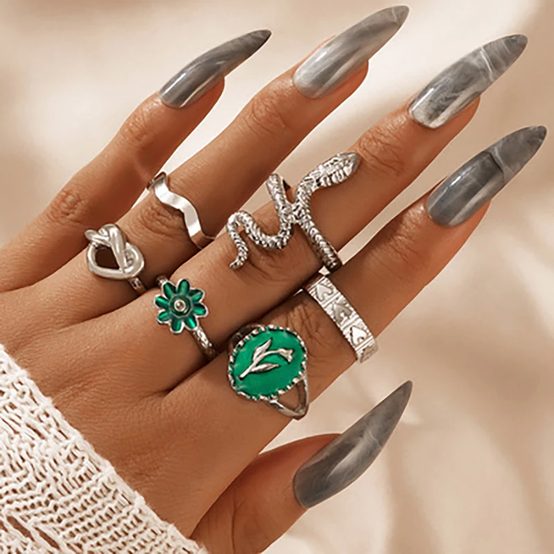 Docona 5 шт.компл. элегантный набор колец с зелеными бабочками и се...