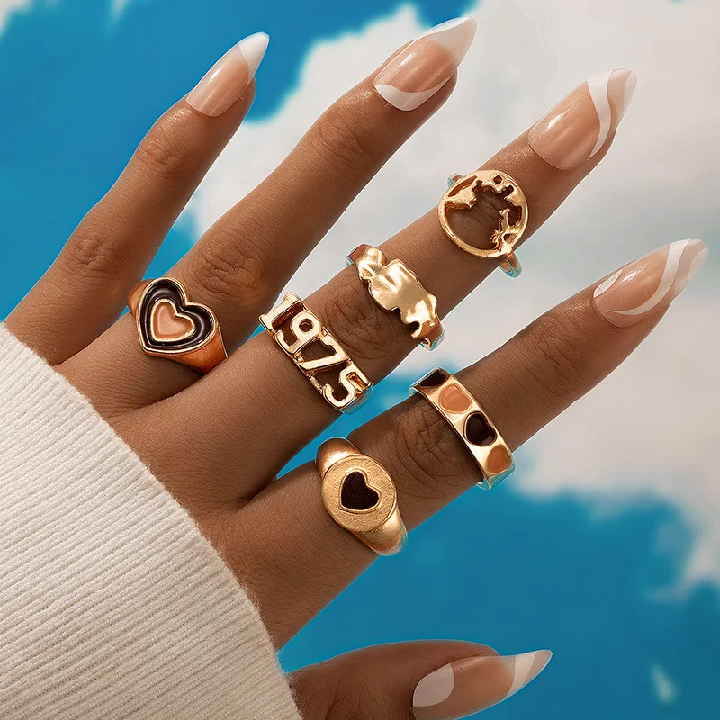 Кольцо в виде капель масла Инс Стиль Тай Чи Цветок Любовь пламя 6 шт кольцо для женщин из нержавеющей стали кольца для женщин милые ювелирные изделияМатериал: металл