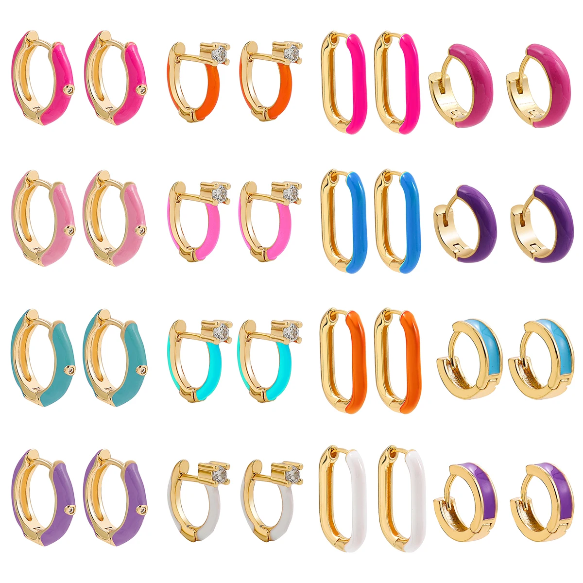 Модные маленькие серьги-кольца U-образной формы с геометрическим рисунком, женские красочные круглые кольца Huggies с фианитами, кольца для ушей, украшения для хряща, подарки