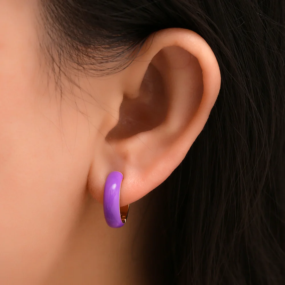 Серьги-кольца Huggie женские с фиолетовымирозовымисиними эмалью, ма...