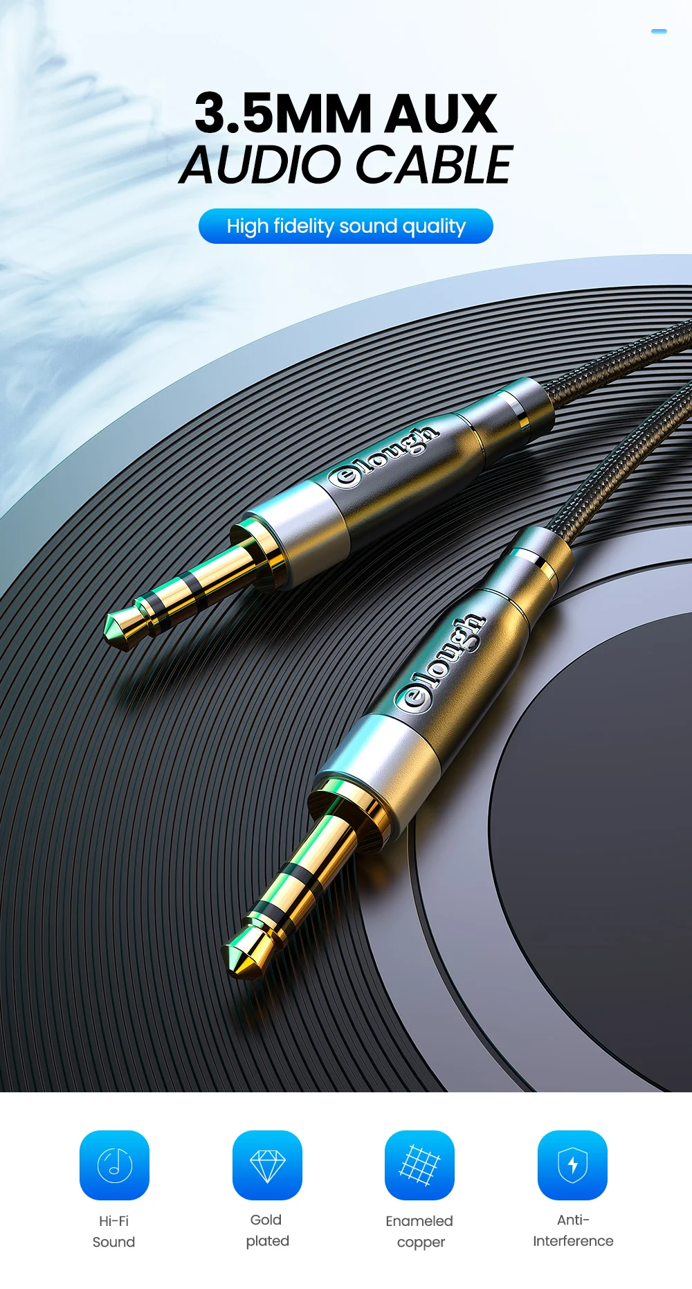 Аудиокабель Elough со штекером AUX 3,5 мм, аудиокабель для iphone, Xiaomi, компьютера, ноутбука, наушников, кабель со штекером Aux 3,5