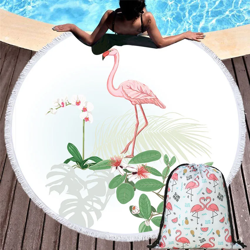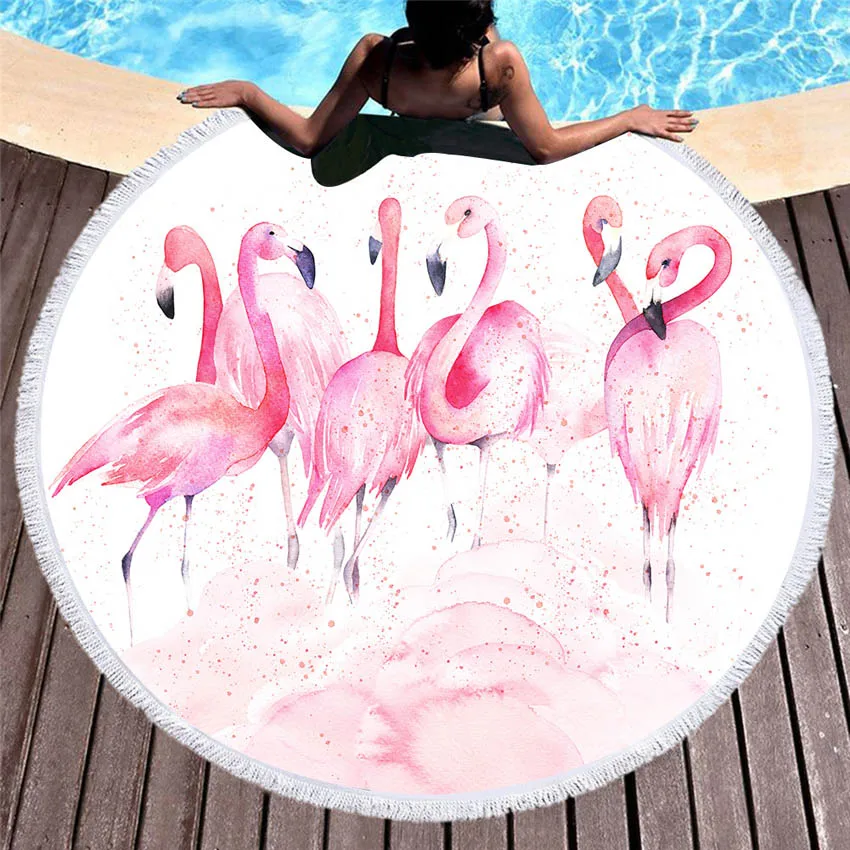 Пляжное полотенце с фламинго, мягкое летнее круглое пляжное полотенце, домашнее банное полотенце, детское настенное гобеленовое одеяло, банное полотенце для взрослых