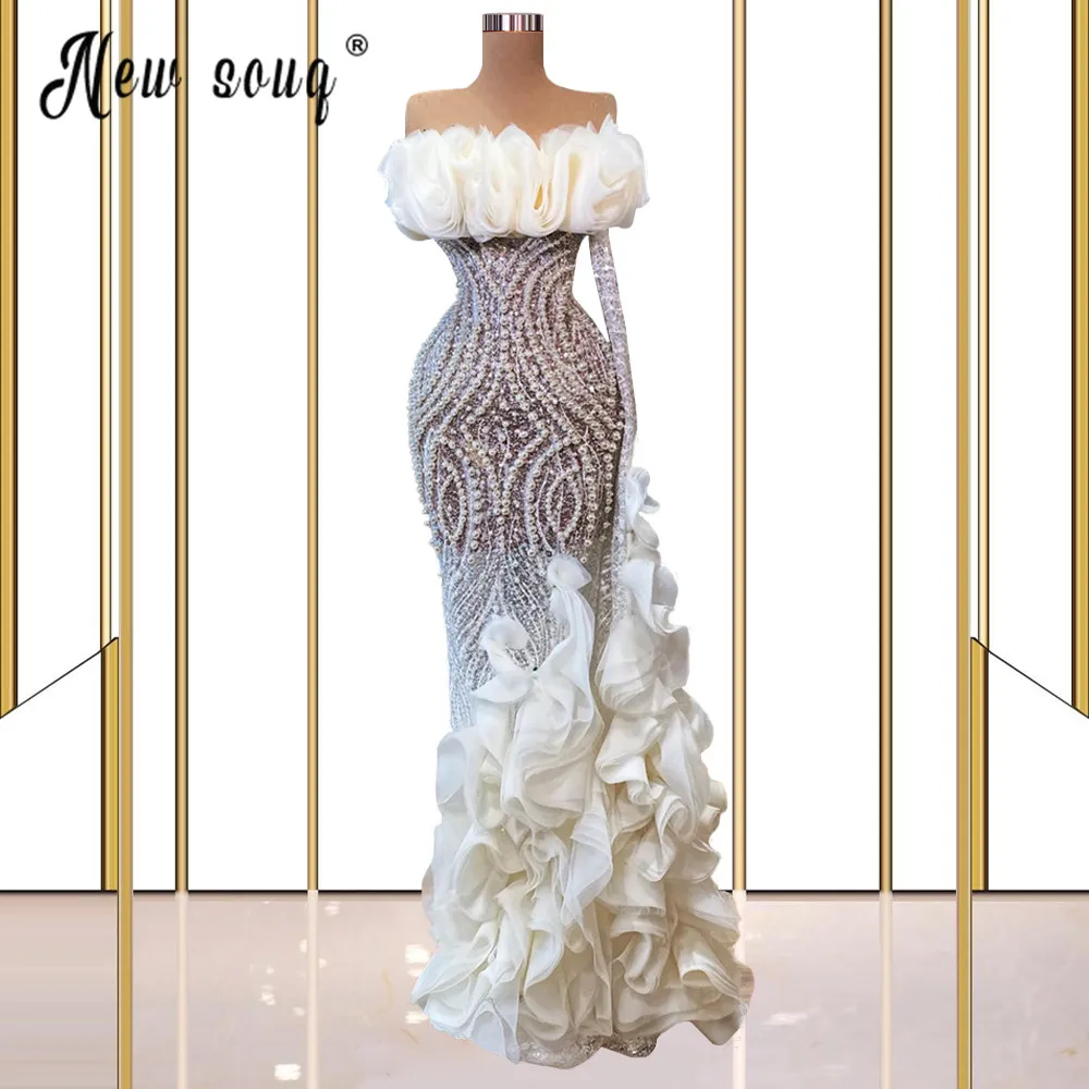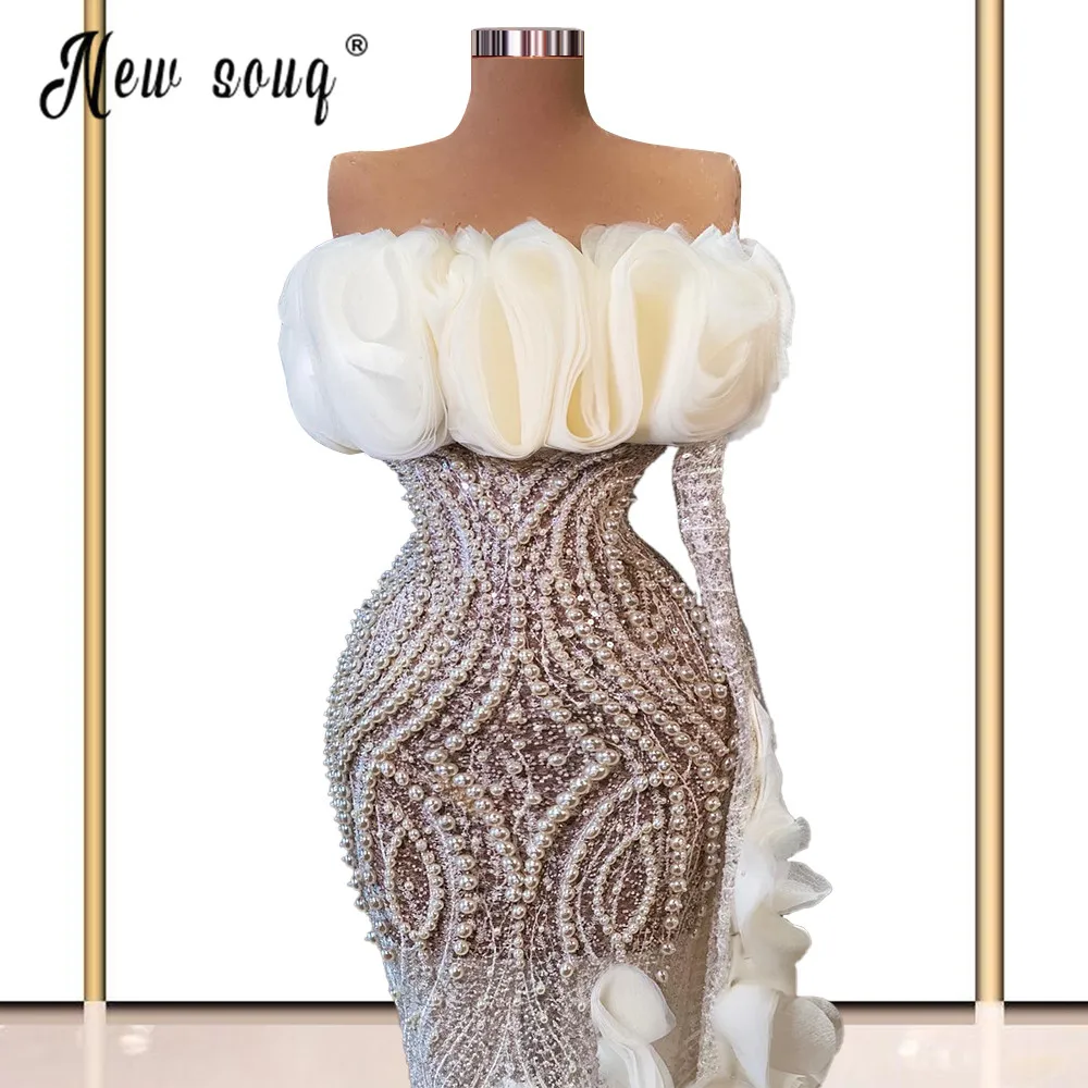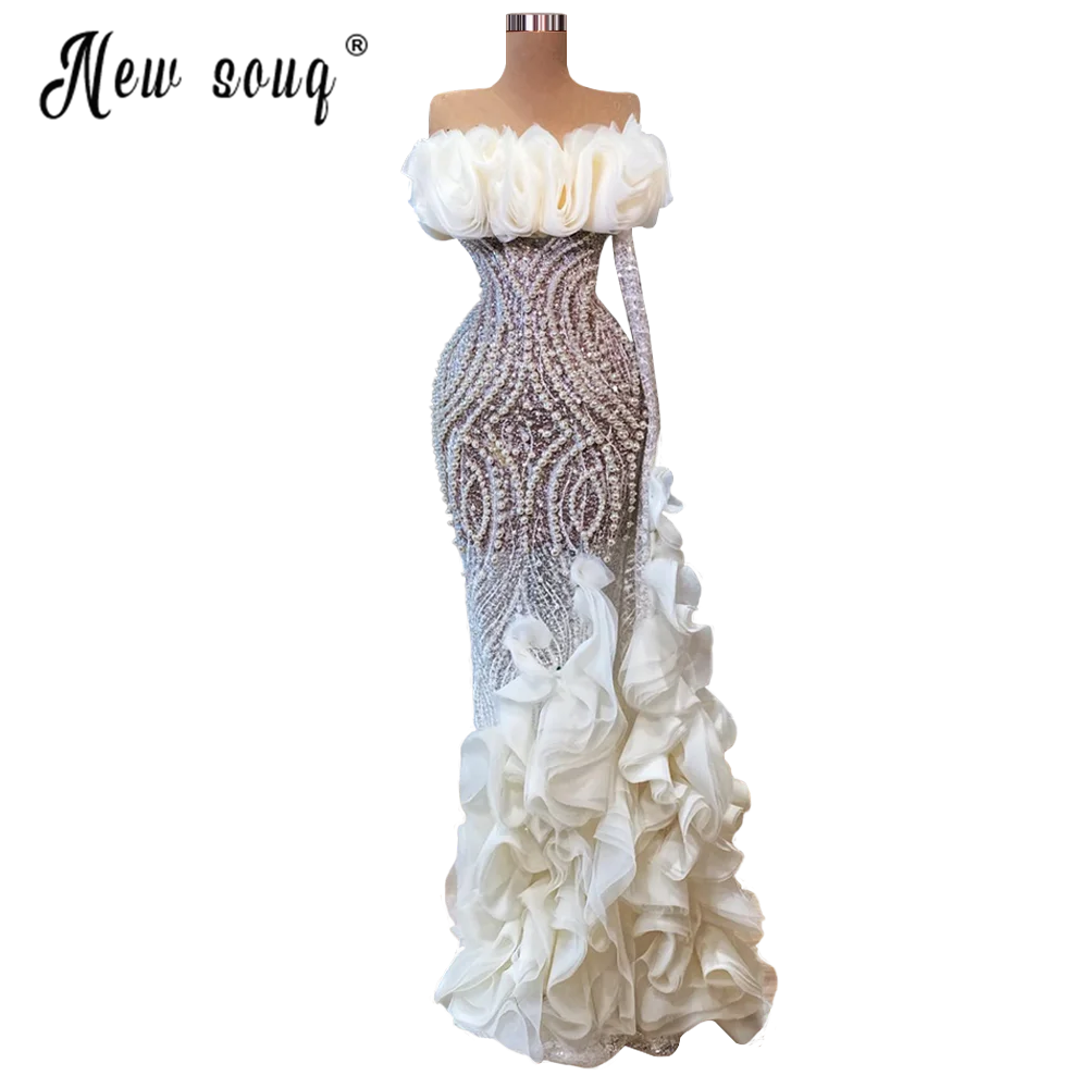 Элегантные белые вечерние платья с бусинами 2021 Aso Ebi Русалка на одно плечо Пышное с оборками без бретелек выпускное платье свадебное платье
