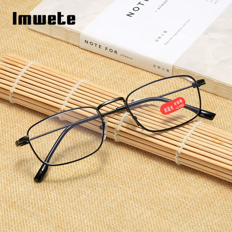 Очки Imwete для чтения для мужчин и женщин, классические модные, с Anti-Blue покрытием, в металлической полноразмерной оправе, для дальнозоркости, легкие + 3,50