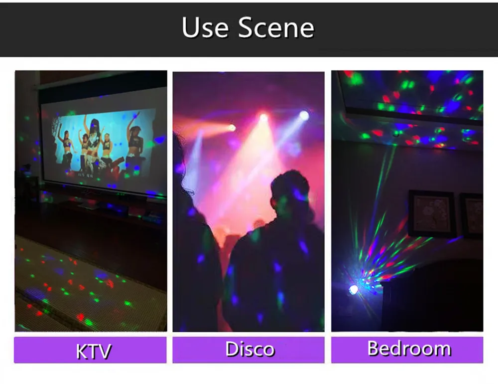 Маленький и изысканный внешний вид.Простая установка, просто подключите и играйте.Три цвета стробоскопических эффектов: красный, зеленый и синий.Длительный срок службы, низкое тепло и энергопотребление.Нет ультрафиолетовых лучей, экологически чистые.Высокая ударопрочность и ударопрочность.Призматическая оболочка, очень красивая.Автоматическое вращение, сценическое освещение.Широкое применение для баров, дискотек, бальных танцев, КТВ, украшения дома, сцены, клуба, вечерние и т. Д.Примечание: этот товар предназначен только для использования в помещении и должен быть предотвращен от воды, влаги и встряхивания.