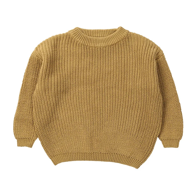 Повседневные свитера для маленьких девочек и мальчиков на осень и зиму, теплый вязаный однотонный плотный пуловер с длинным рукавом, одежда для детей от 9 месяцев до 5 лет