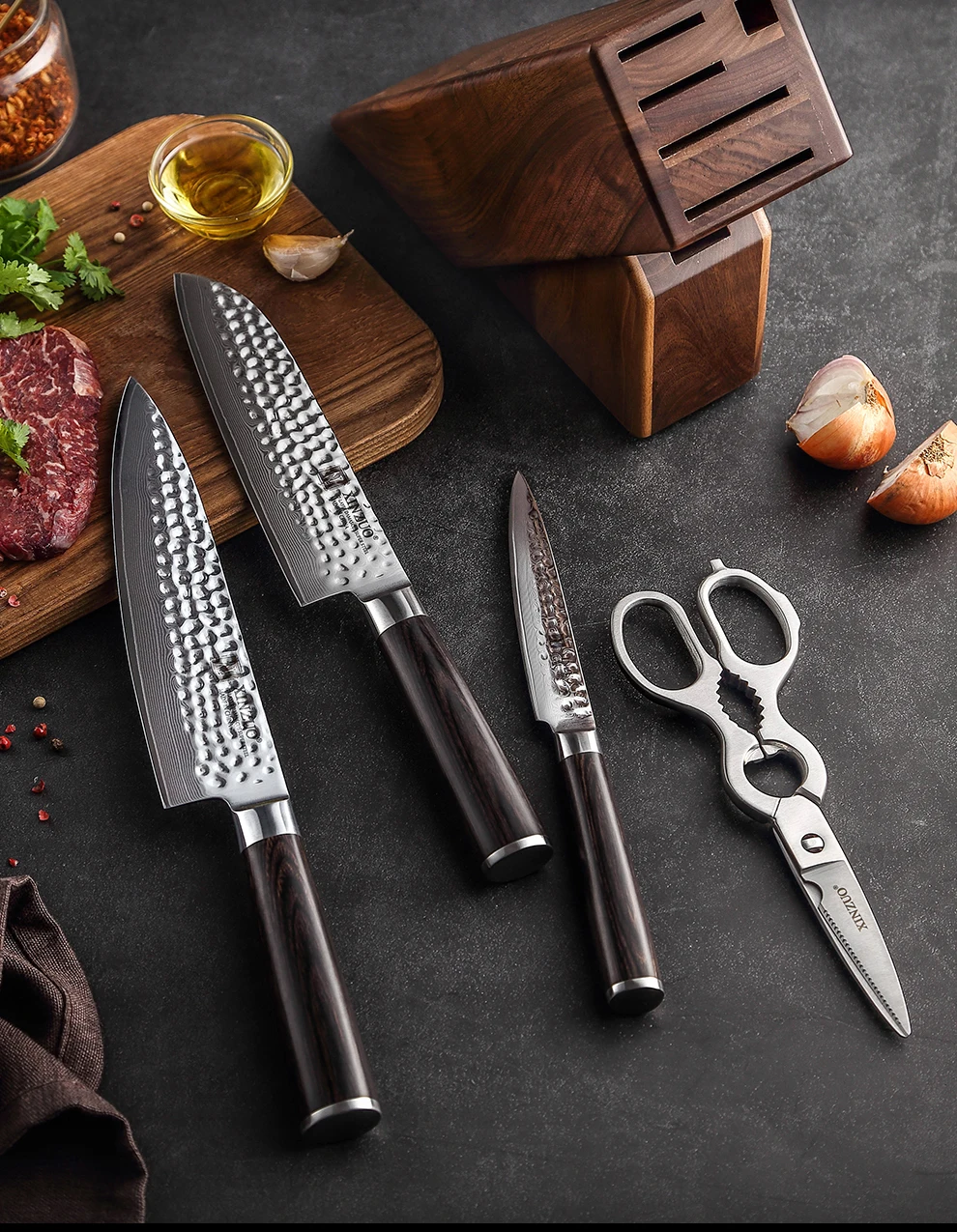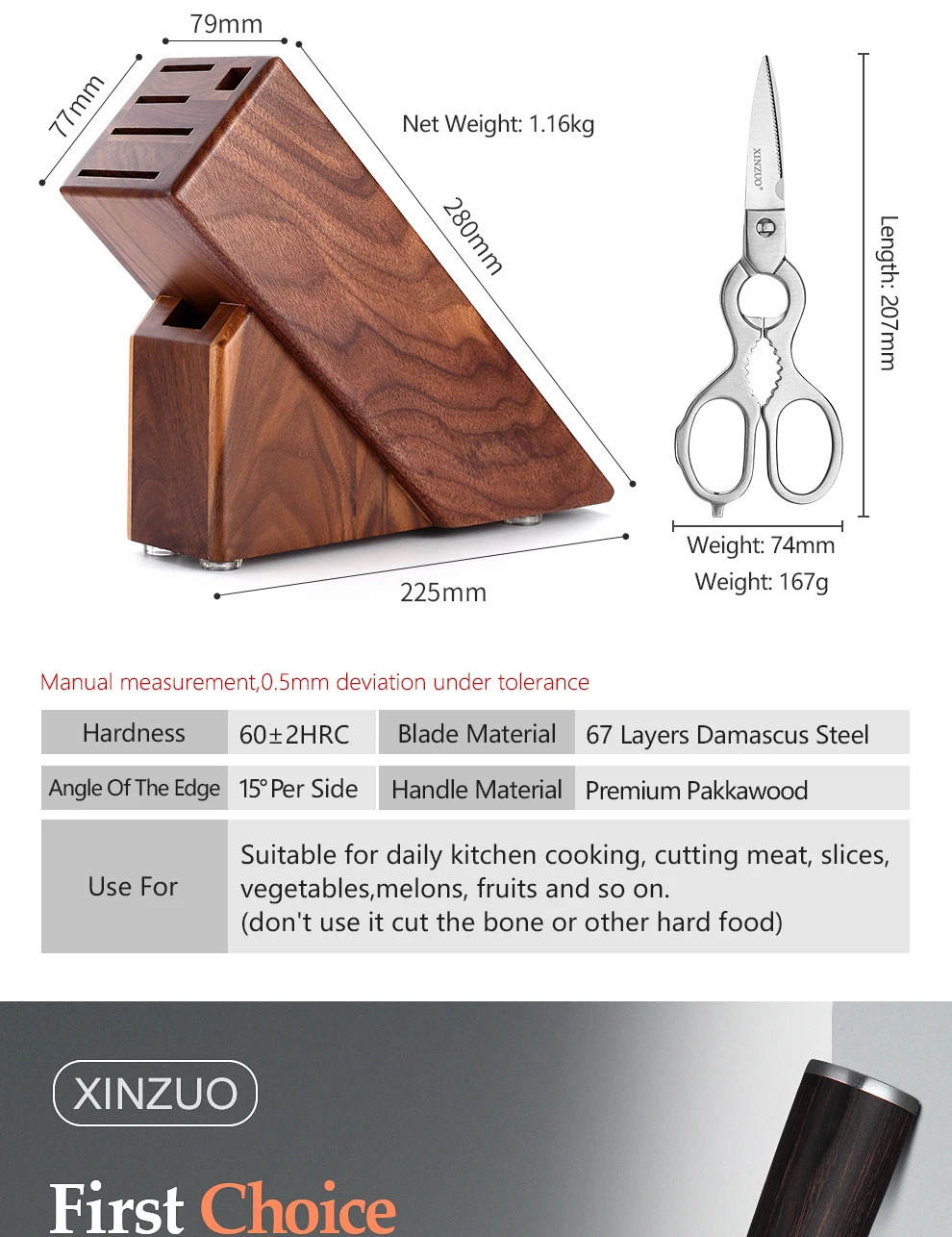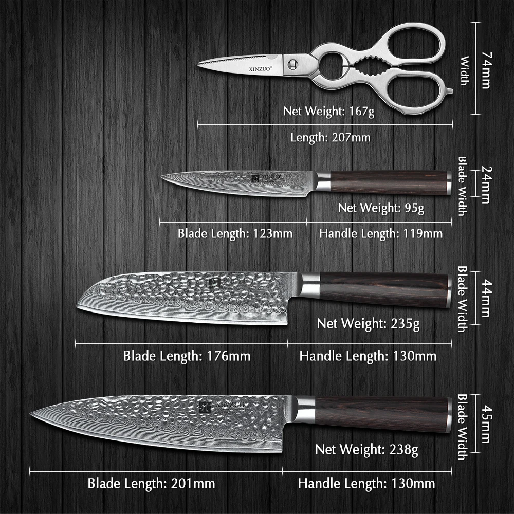 Набор кухонных ножей XINZUO, нож шеф-повара из дамасской стали 8 дюймов 7 дюймов, универсальный нож сантоку 5 дюймов, ножницы для резки мяса, блок