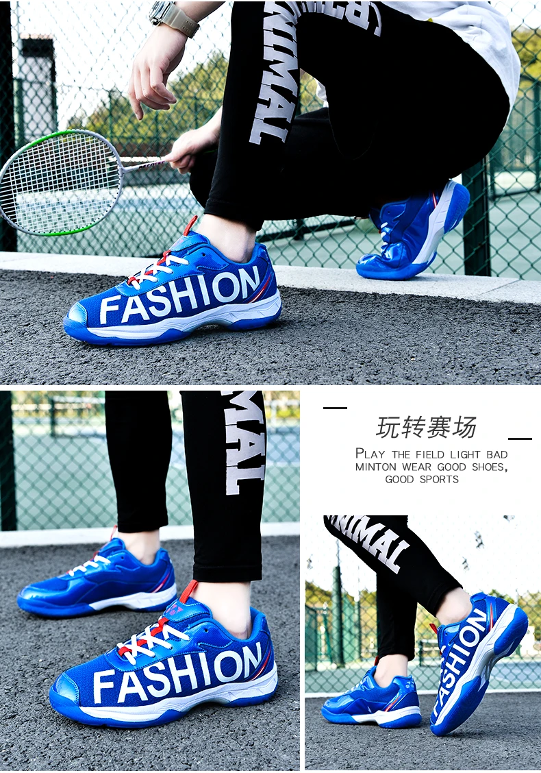 Мужские и женские кроссовки для бадминтона, синяя сетчатая професси...