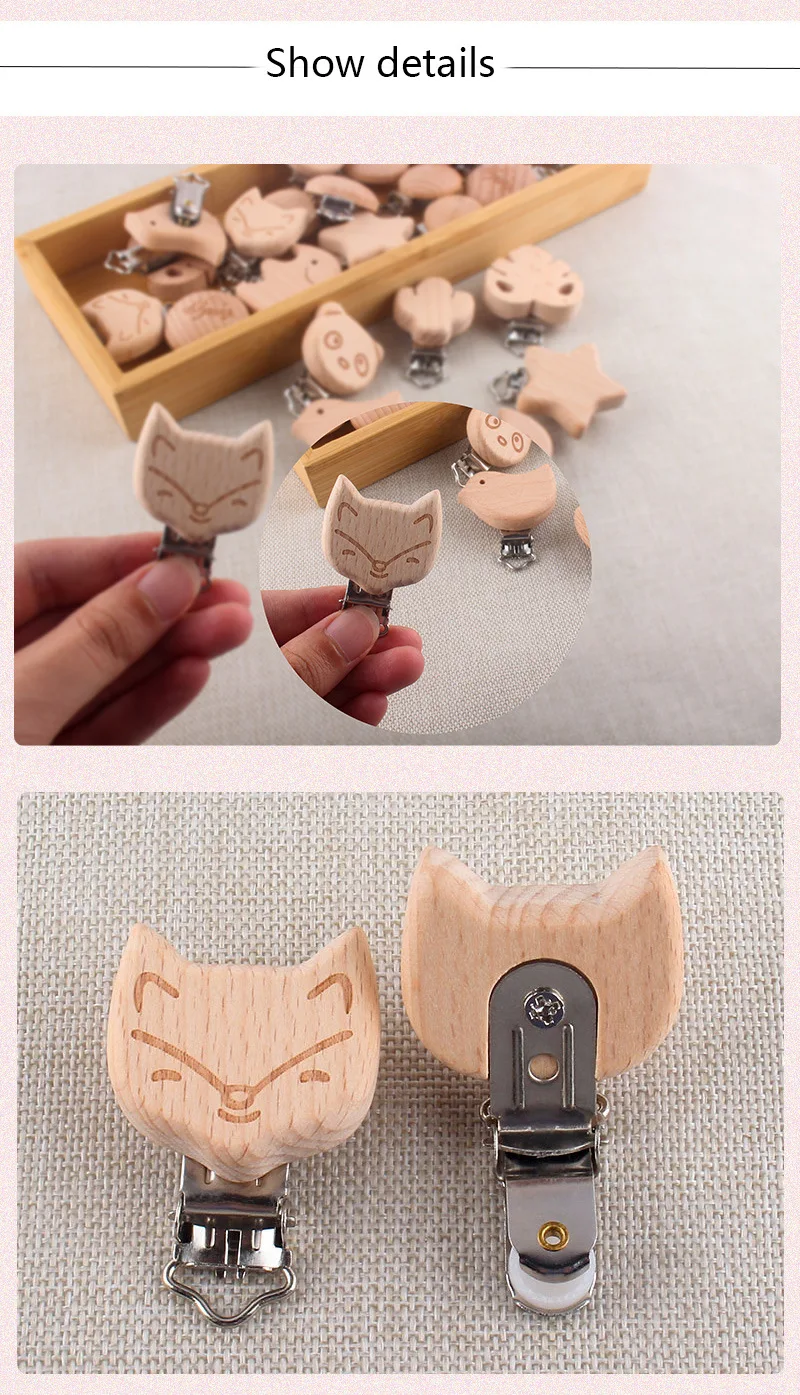 KeywordsWood Animal Pacifier Clips
