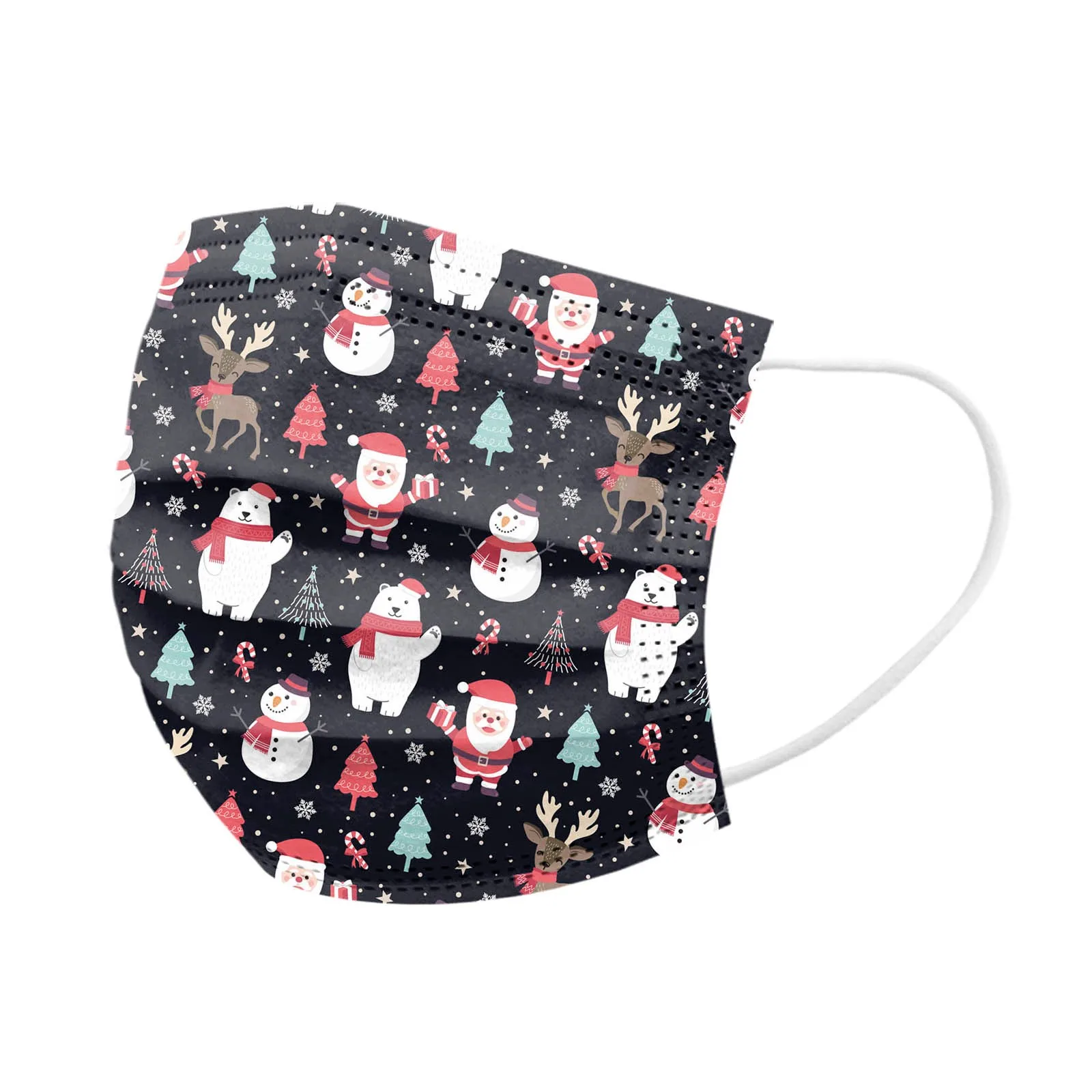 10 шт., одноразовая маска для лица с рождественским принтом для взрослых, 3 слоя