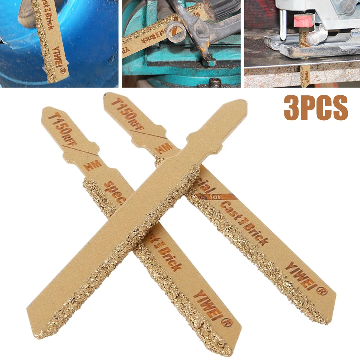 3 шт. HCS лобзик Алмазный лобзик лезвие для пилы T150RFF твердосплавная пайка T-хвостовик 50 Грит Ассорти лобзик лезвия для пилы инструмент для резки керамической плитки