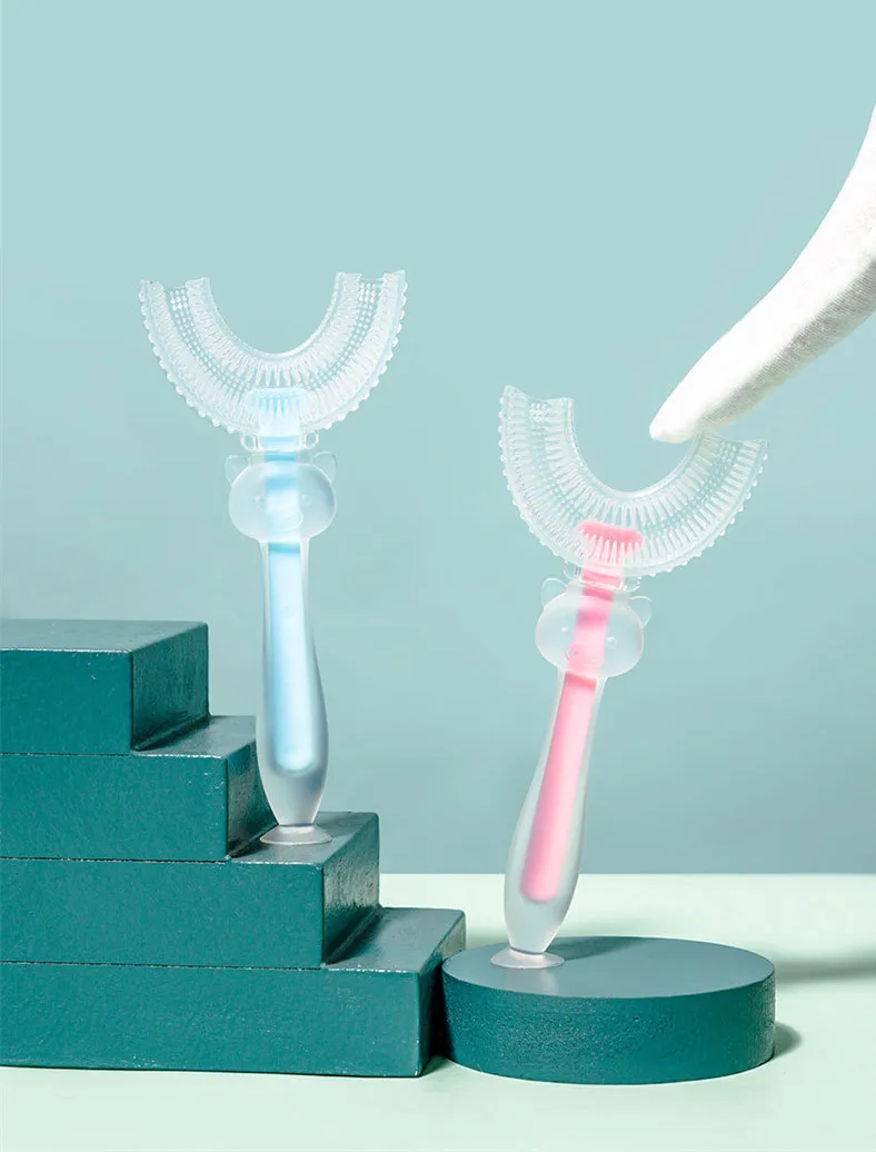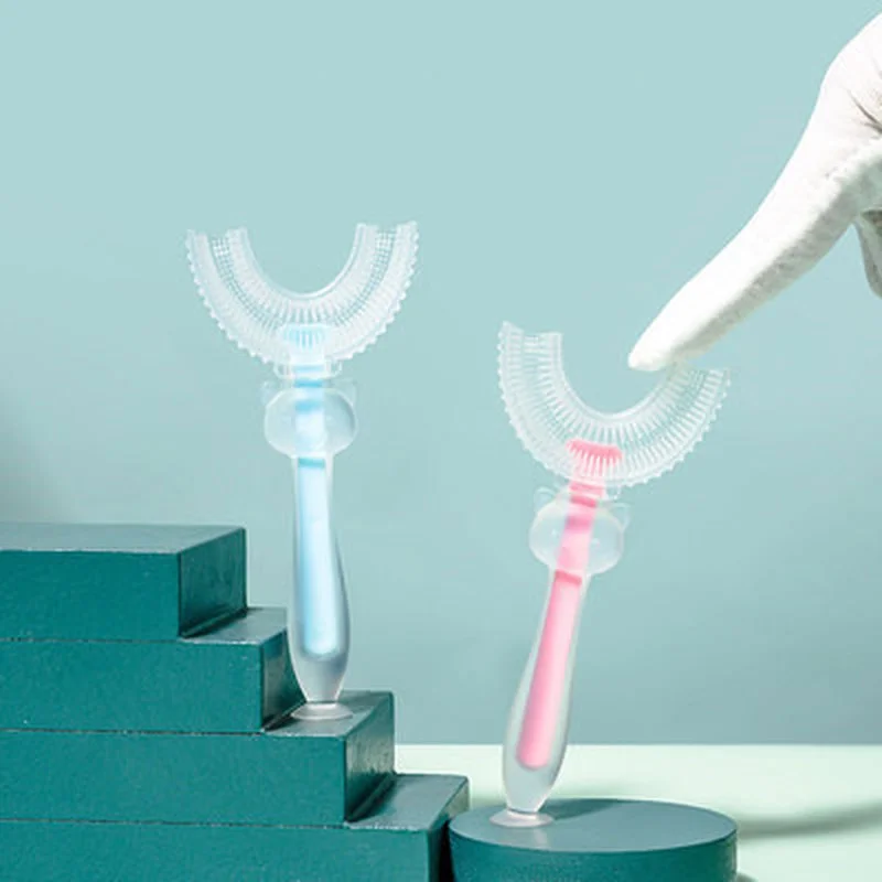 Детская зубная щетка U-образной формы, зубная щетка для младенцев с ручкой, силиконовая щетка для ухода за полостью рта, чистящая щетка для малышей возрастом 2-12 годов
