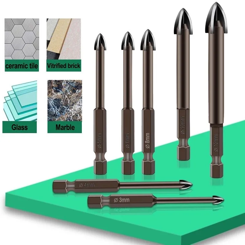 1 шт. крестообразные шестигранные насадки для плитки, Открыватель отверстий для стекла, керамики, бетона, сплав, Размеры 3 мм, 4 мм, 5 мм, 6 мм, 7 мм, 8 мм, 10 мм, 12 мм