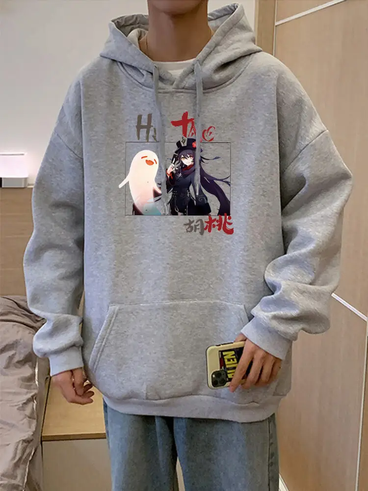 Kawaii Толстовка Эстетическая свободная Hu Tao карманная Genshin ударная печатная Одежда Harajuku одежда Повседневная Уличная Женская толстовка