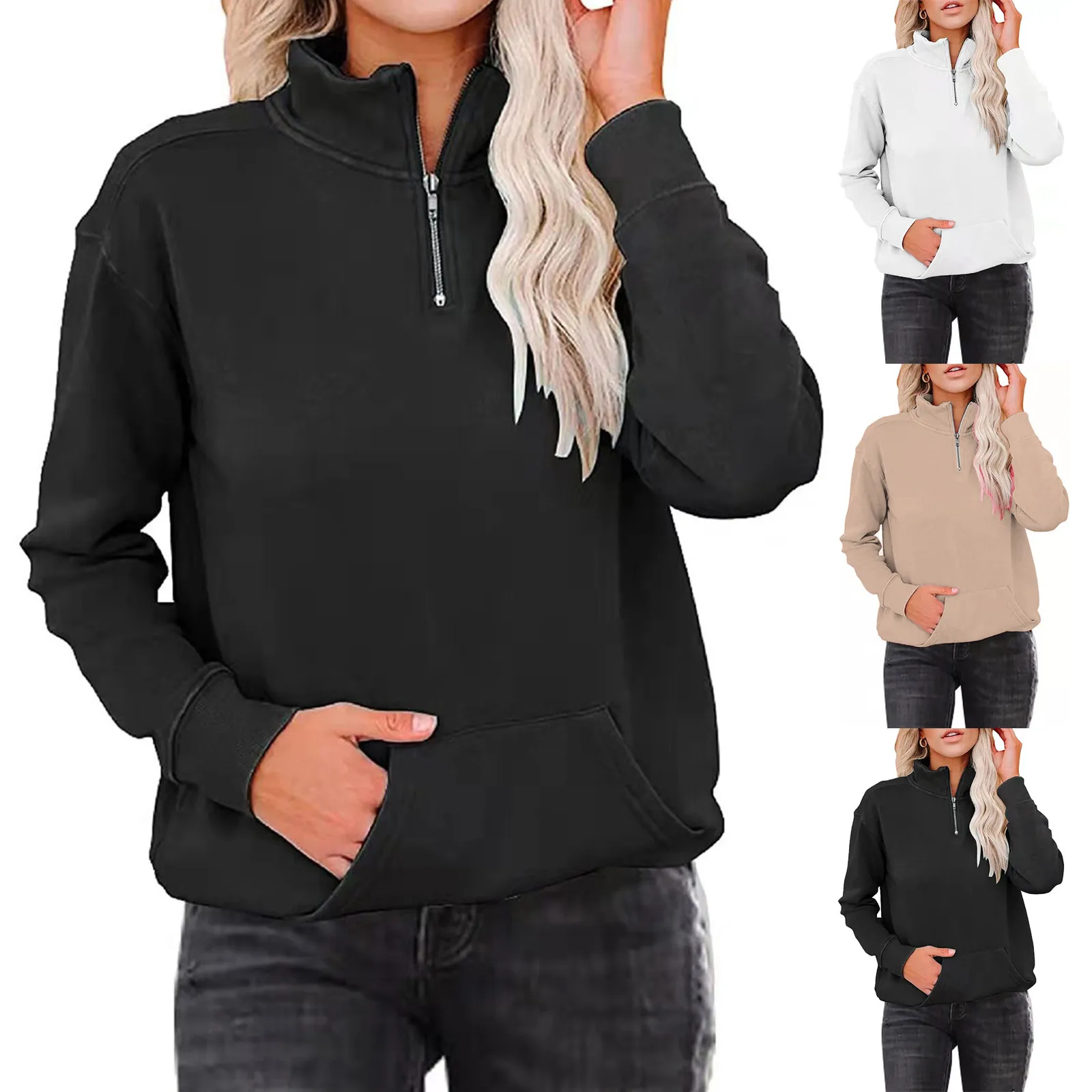 Женские свитшоты на молнии, легкий однотонный топ с длинным рукавом, повседневная одежда в Корейском стиле Харадзюку