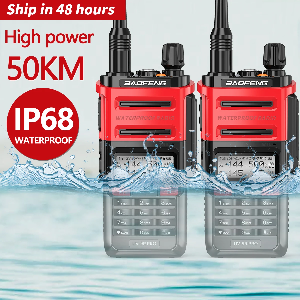 2 шт., водонепроницаемая рация Baofeng UV-9R PRO VHF UHF, дальность действия 50 км