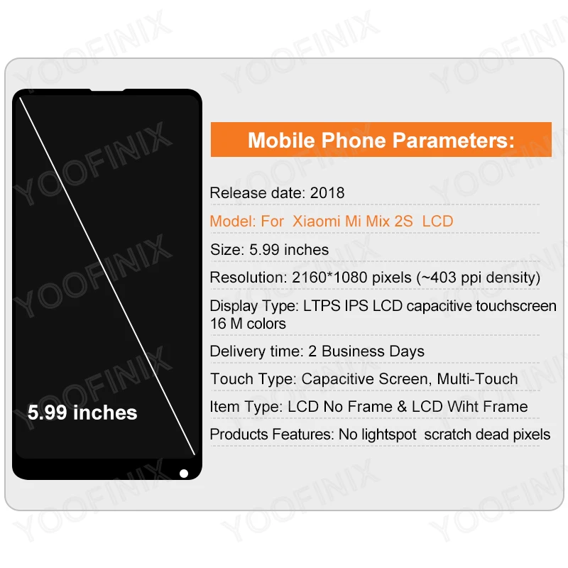 ЖК-дисплей 5,99 дюйма для Xiaomi Mix 2S, сенсорный экран с дигитайзером в сборе, запасные части для Xiaomi Mi Mix 2S, дисплей M1803D5XA LCD