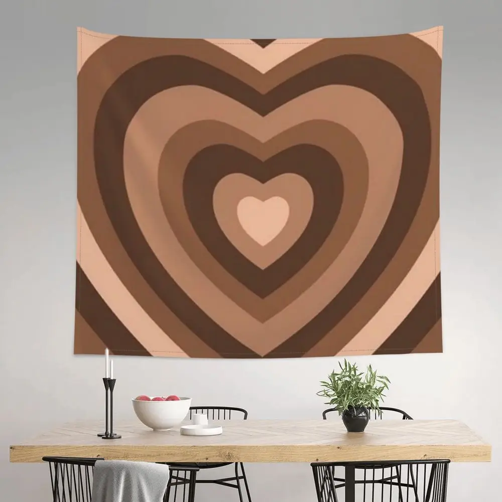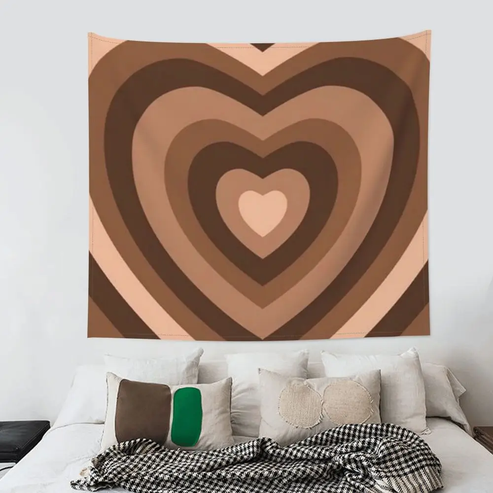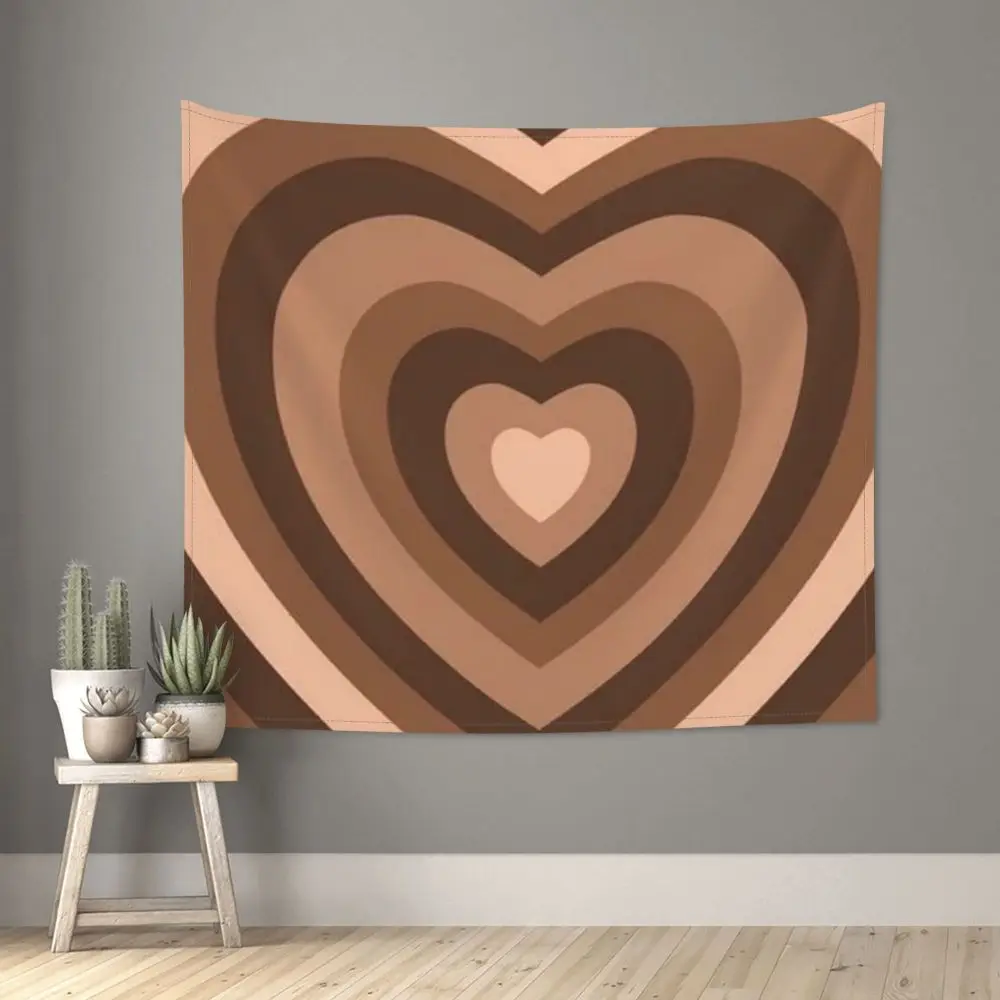 Y2k коричневый гобелен в форме сердца, настенный гобелен в стиле хиппи из полиэстера, настенный гобелен, украшение в эстетическом стиле, декор для комнаты 95x73 см