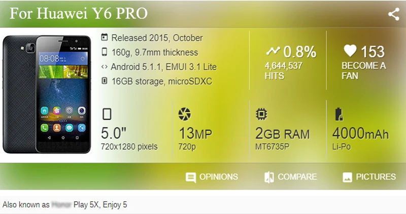 Y6 Pro TIT AL00 L01/For Honor 4C pro