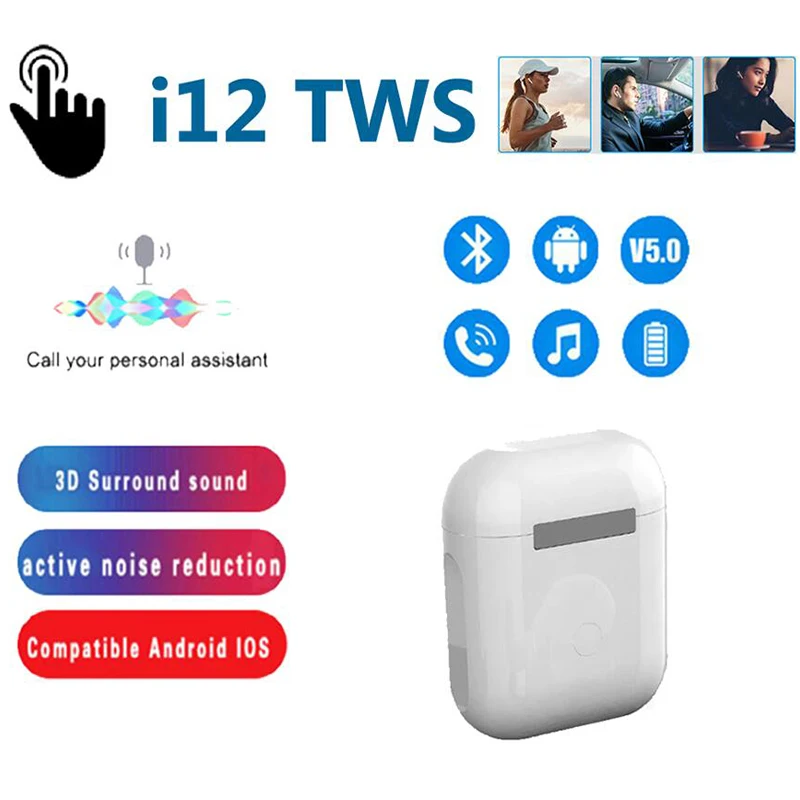 Беспроводные наушники i12 Tws Bluetooth 5,0, мини-наушники-вкладыши с микрофоном, Спортивная гарнитура для iPhone, Xiaomi, Lg и всех телефонов
