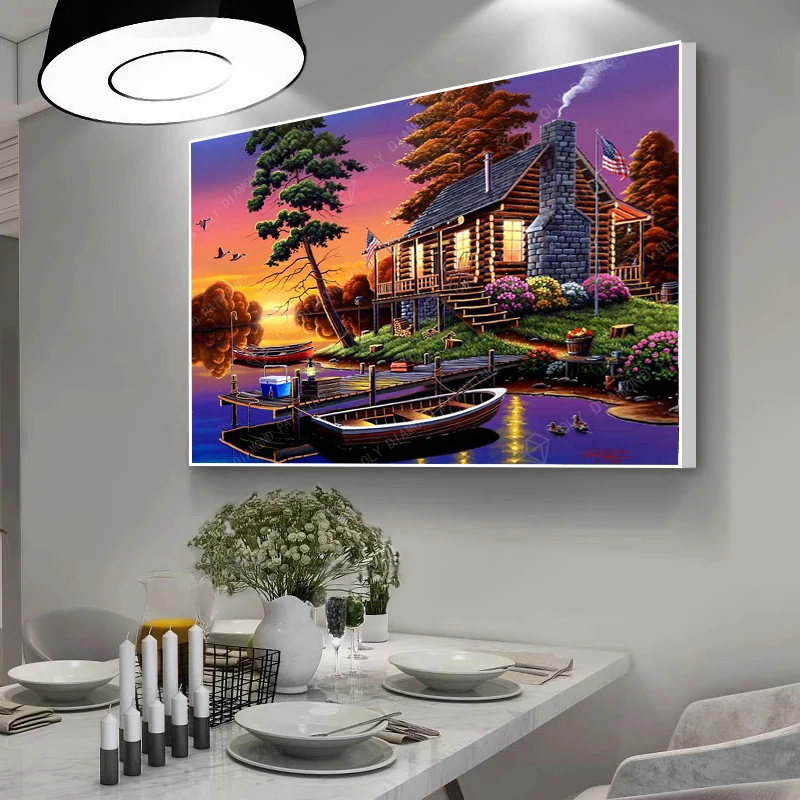 Алмазная живопись 5D, Алмазная мозаика пейзаж, коттедж, распродажа,...