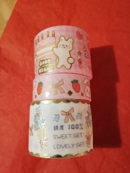 Envoi rapide, le colis est arrivé en 1 semaine, bien protégé par du papier bulle. Les washi tapes sont variés et jolis (certains ont même des dorures !). Seul bémol, l'un d'eux est arrivé taché donc il faudra jeter la partie concernée.