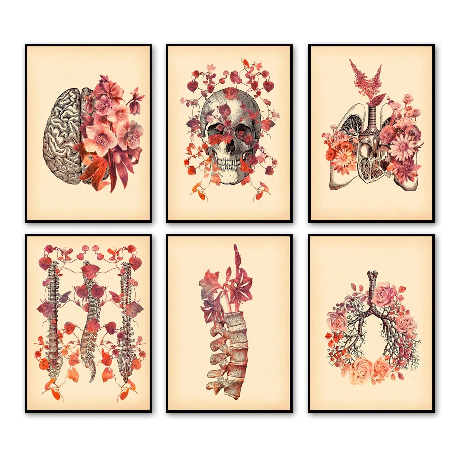 Абстрактная медицина дантист зубы Сердце цветок винтажный скандинав...