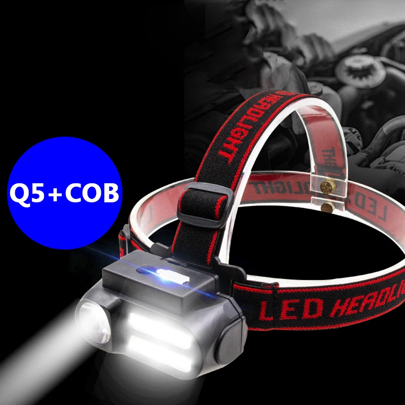 Мини-светодиодный налобный фонарь XP-G Q5 COB с аккумулятором 18650