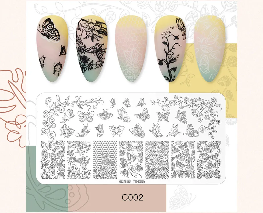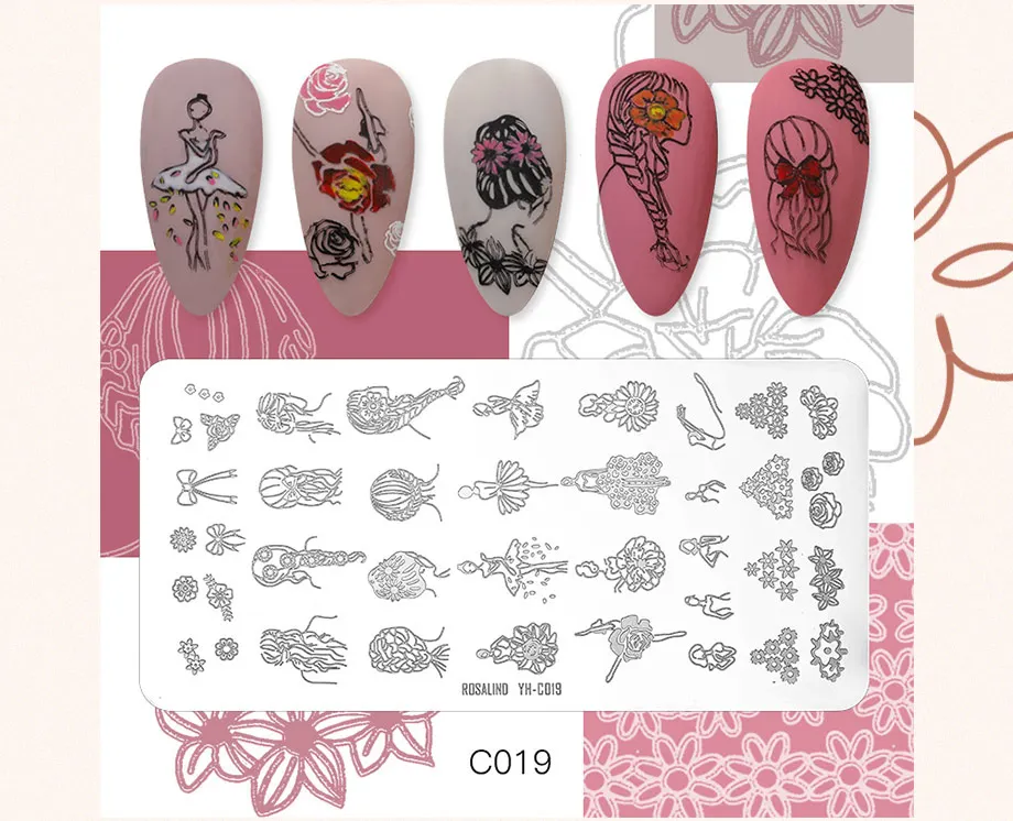 ROSALIND шаблоны тиснения ногтей Plate Цветы Листья мультфильм мрамор Геометрическая полоса изображение для дизайна ногтей DIY штамп для росписи инструмент