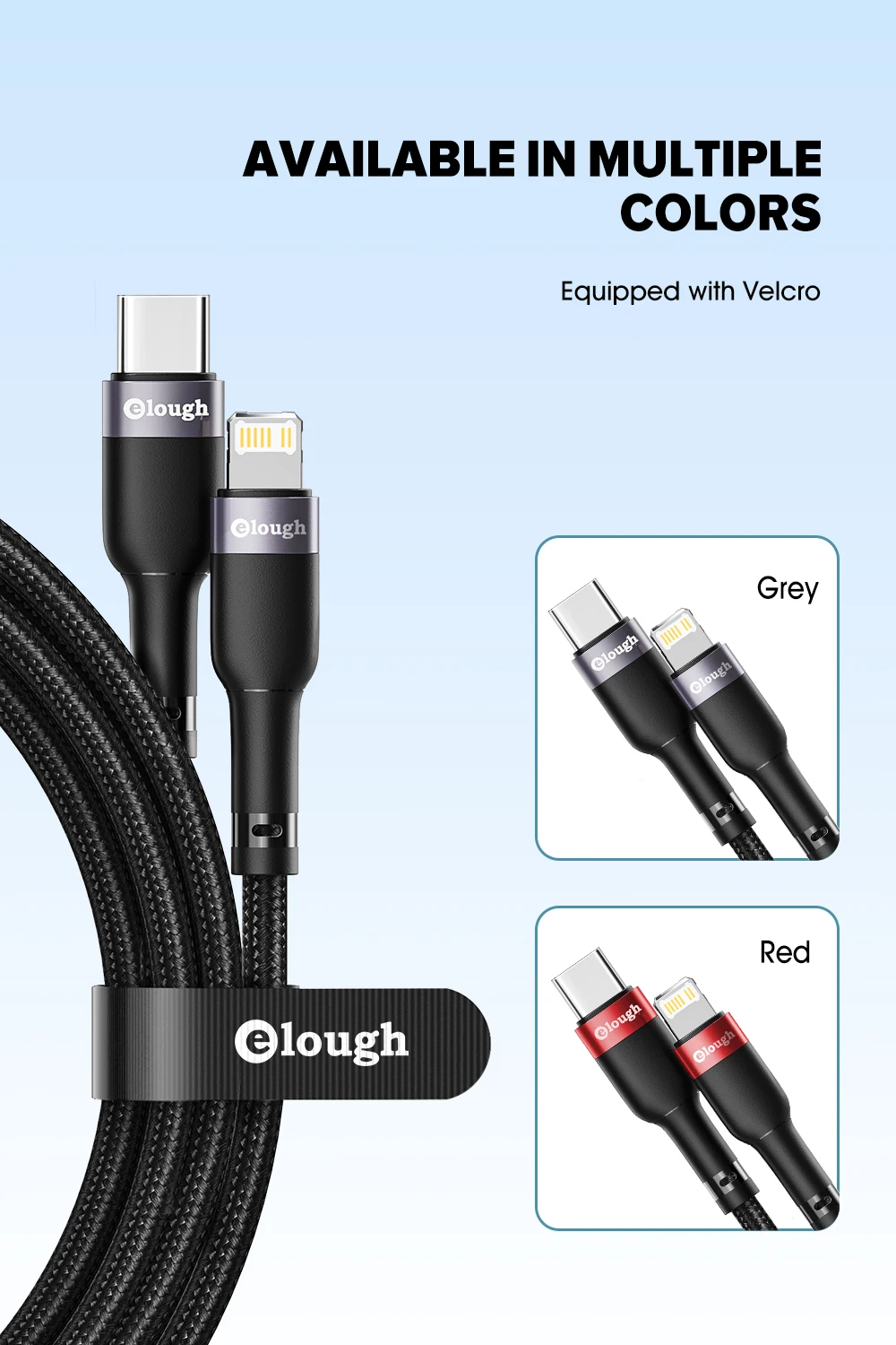 Кабель зарядный Elough с разъемами USB Type-C и Lightning, 20 Вт