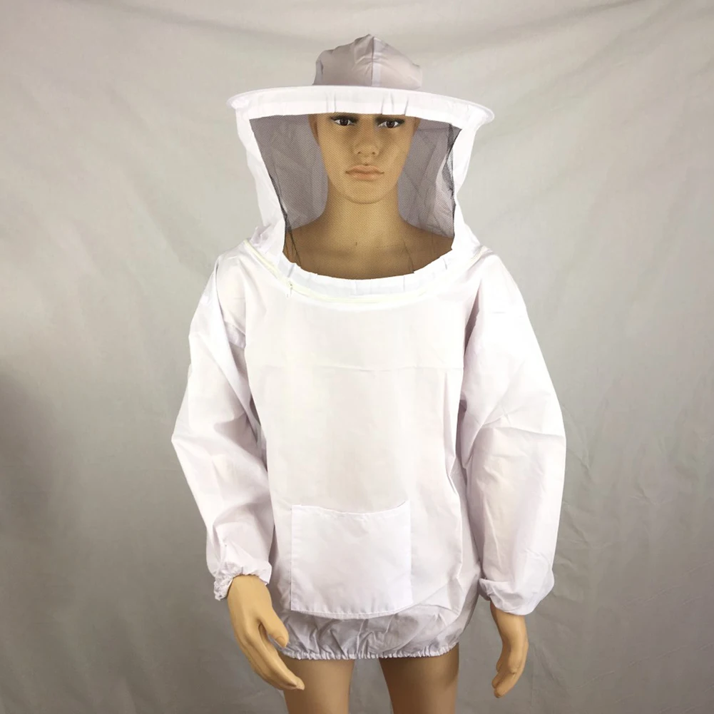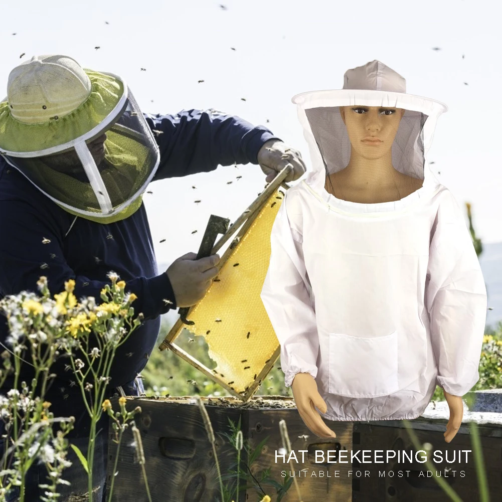 Костюм пчеловодческий из полиэстера, Защитная Сетчатая верхняя одежда на молнии, товары для пчеловодства с шляпой, белый