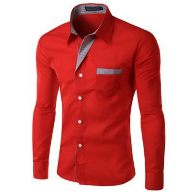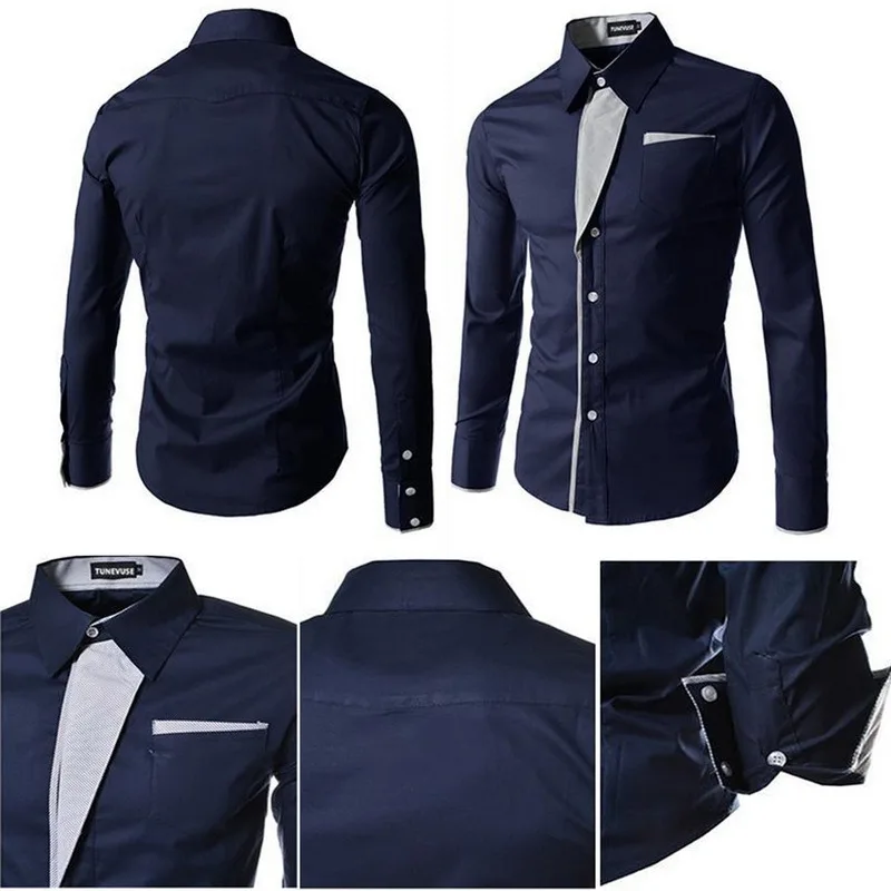 Мужская приталенная рубашка с длинным рукавом, в стиле кэжуал
