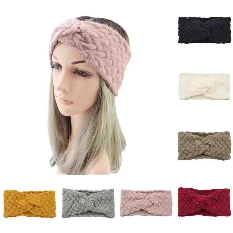 Зимняя теплая шерстяная перекрестная вязаная повязка на голову, Женский обогреватель для ушей, однотонный тюрбан, плетеная повязка на голову, повязки для волос, аксессуары для волос
