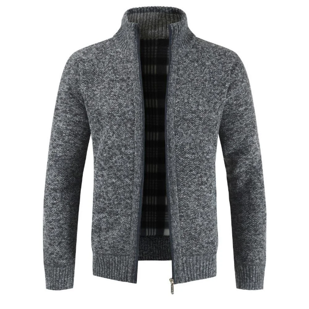 Осень-зима 2021, мужской вязаный свитер, вязаная куртка с плюшевой подкладкой и карманами, теплая удобная куртка на молнии