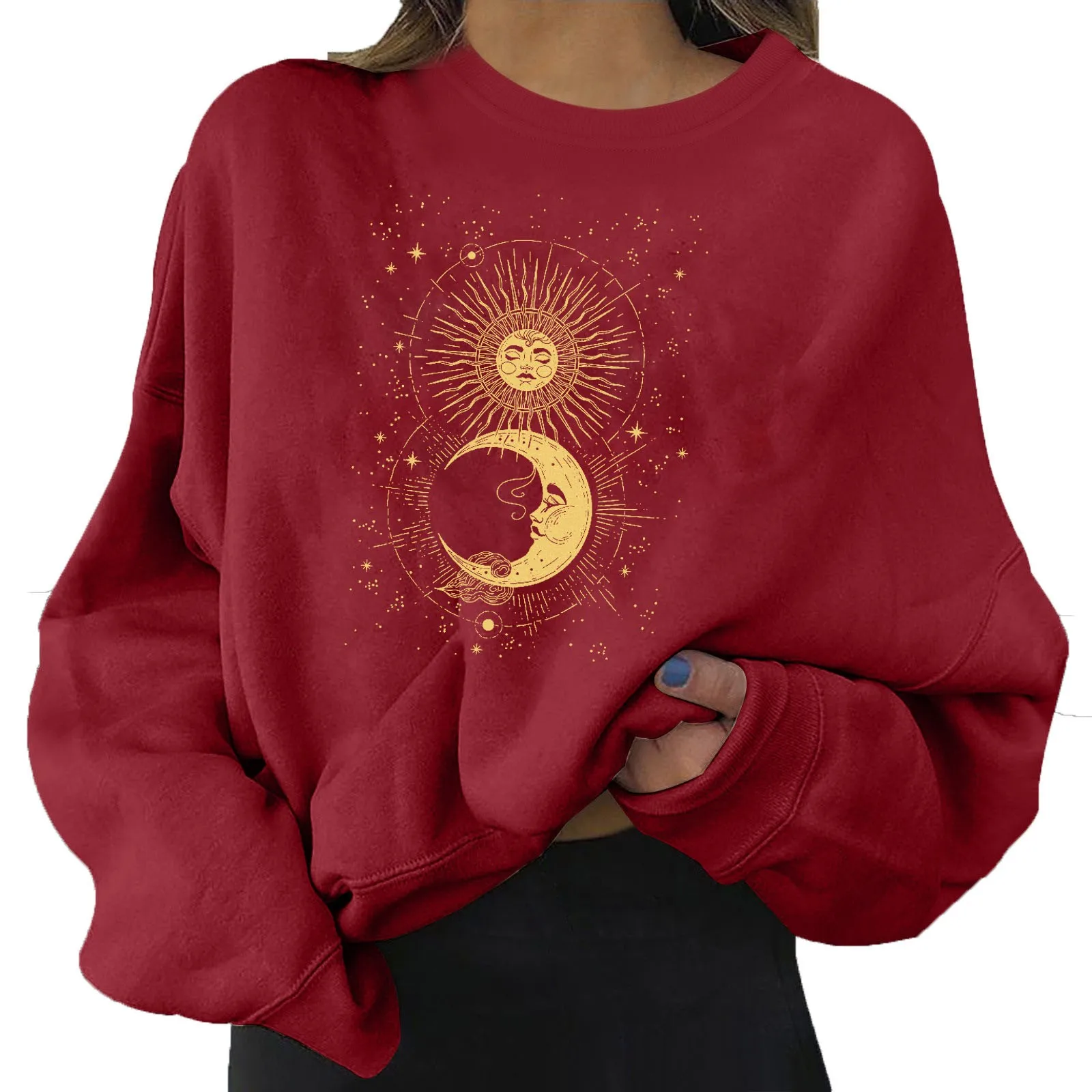 Женский свитшот с длинным рукавом, с принтом Солнца и Луны