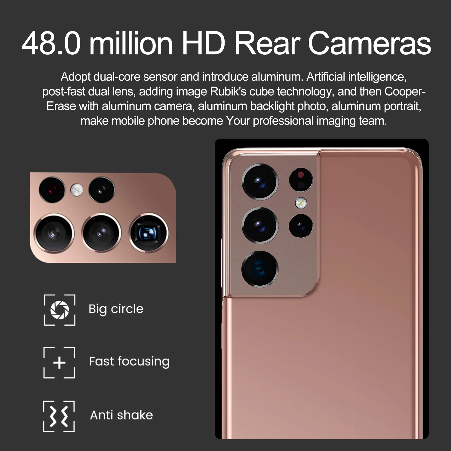 Новинка, смартфон глобальная версия S21, телефон с экраном 16 + 512 ГБ, мобильный телефон с 10-ядерным процессором, Android 10, 6800 мАч, игровой телефон с функцией распознавания лица