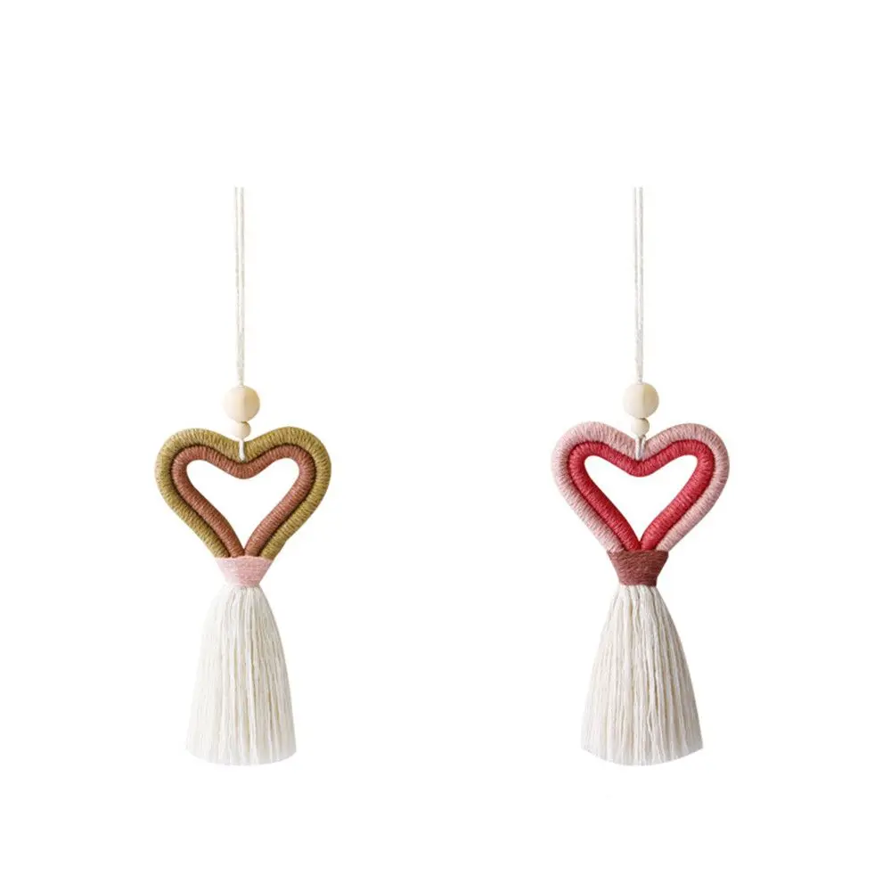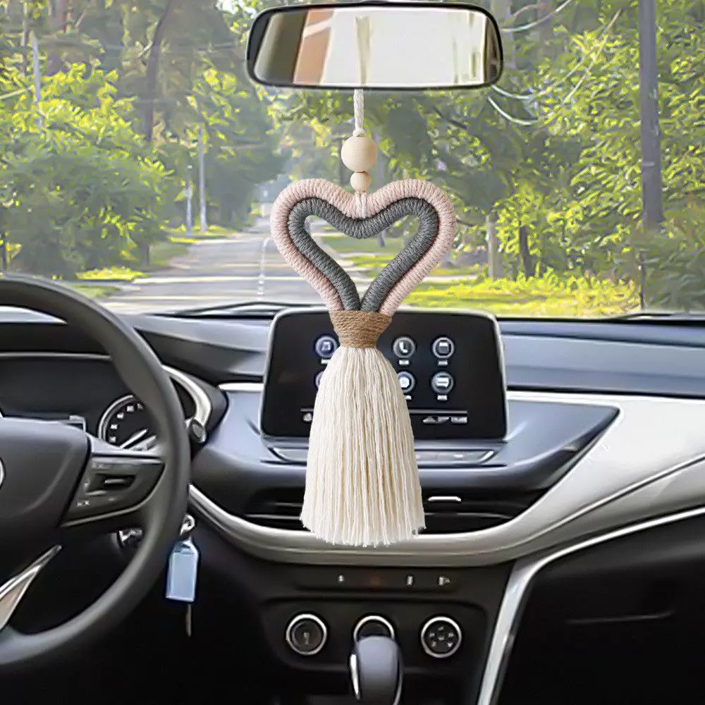 Плетеная деревянная подвеска в виде сердца для зеркала заднего вида