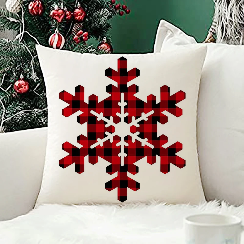 Снежинка, красная решетчатая наволочка с принтом, искусственные подарки, наволочки для гостиной и офиса