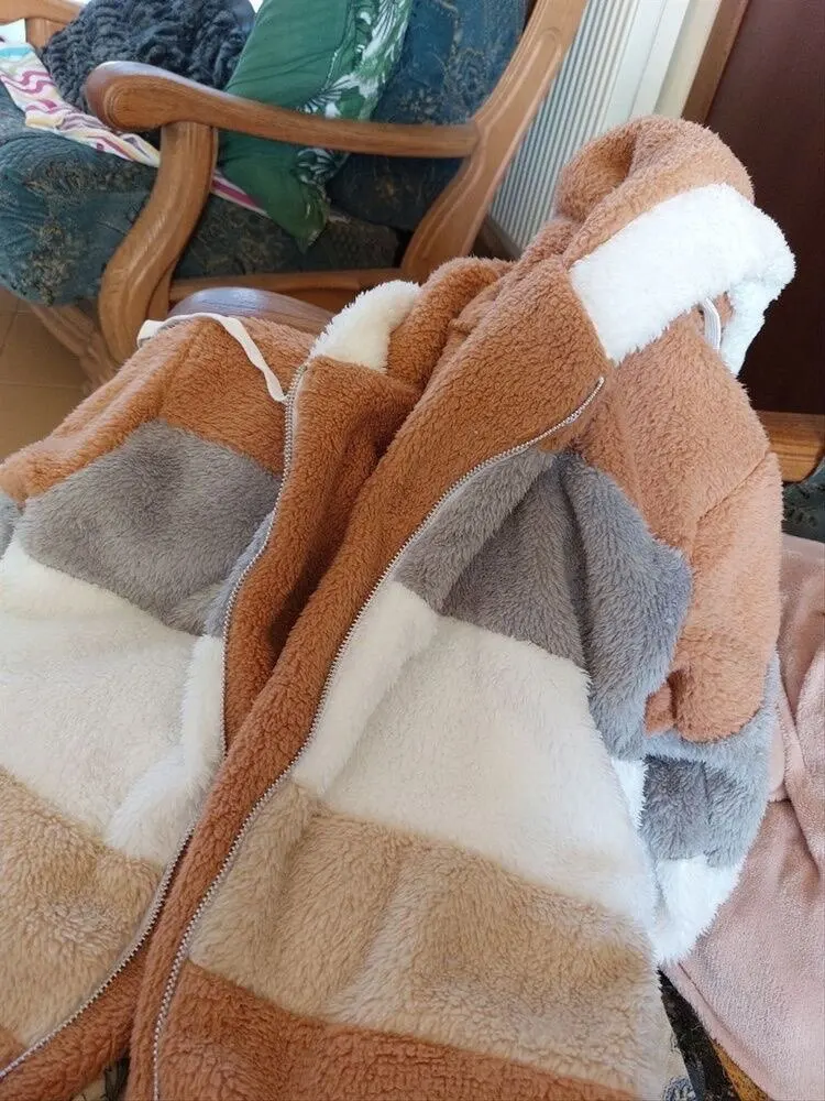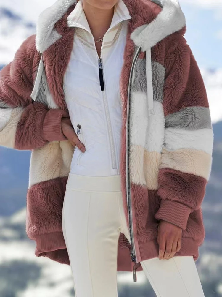 Женское длинное флисовое пальто с искусственным мехом, осень-весна