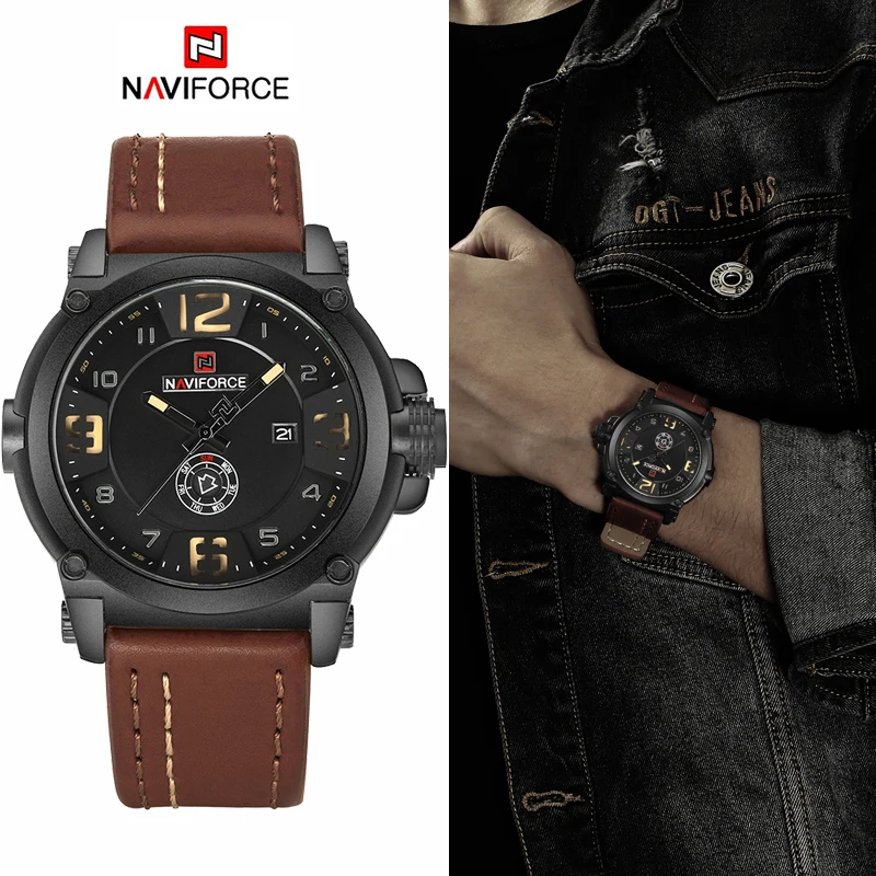2020 NAVIFORCE мужские спортивные военные кварцевые часы Топ люксовый бренд Мужские Аналоговые часы с кожаным ремешком наручные часы Relogio Masculino