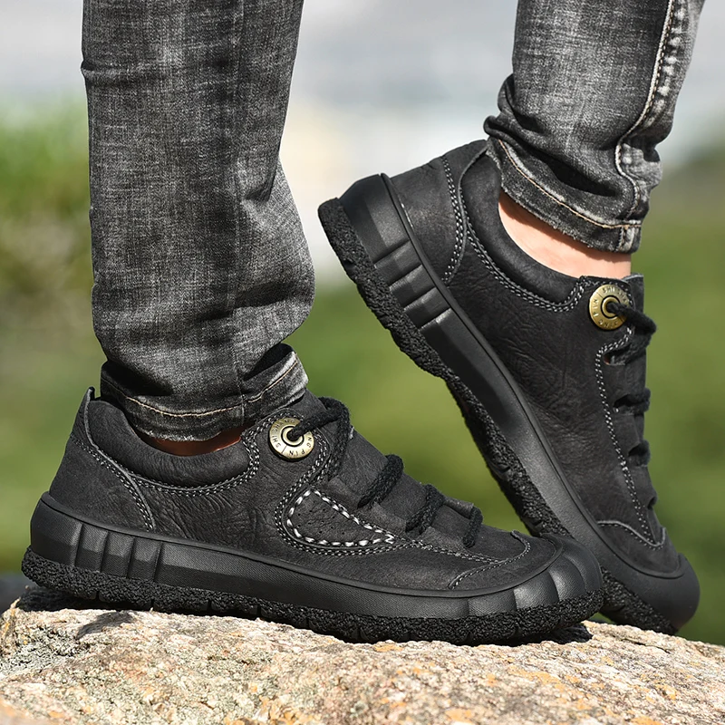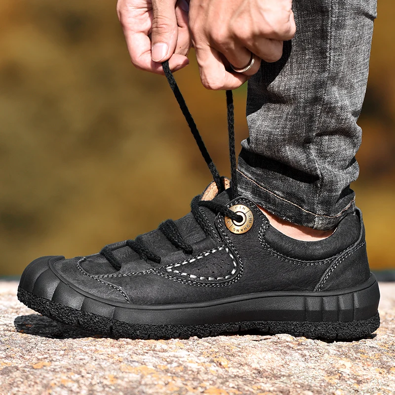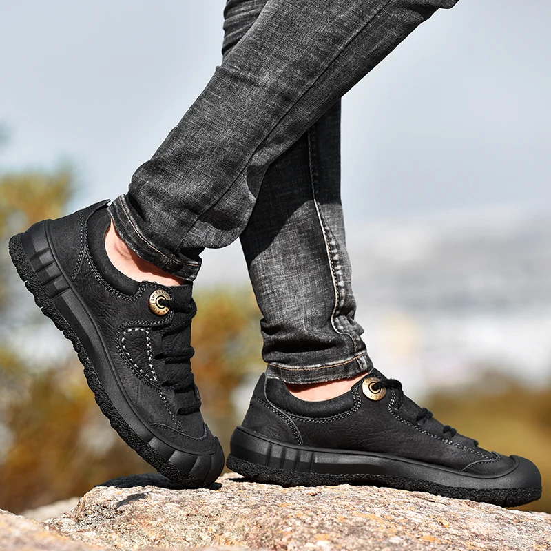Туфли мужские из натуральной кожи, на шнуровке, Повседневная прошитая вручную обувь на толстой подошве, ручная работа
