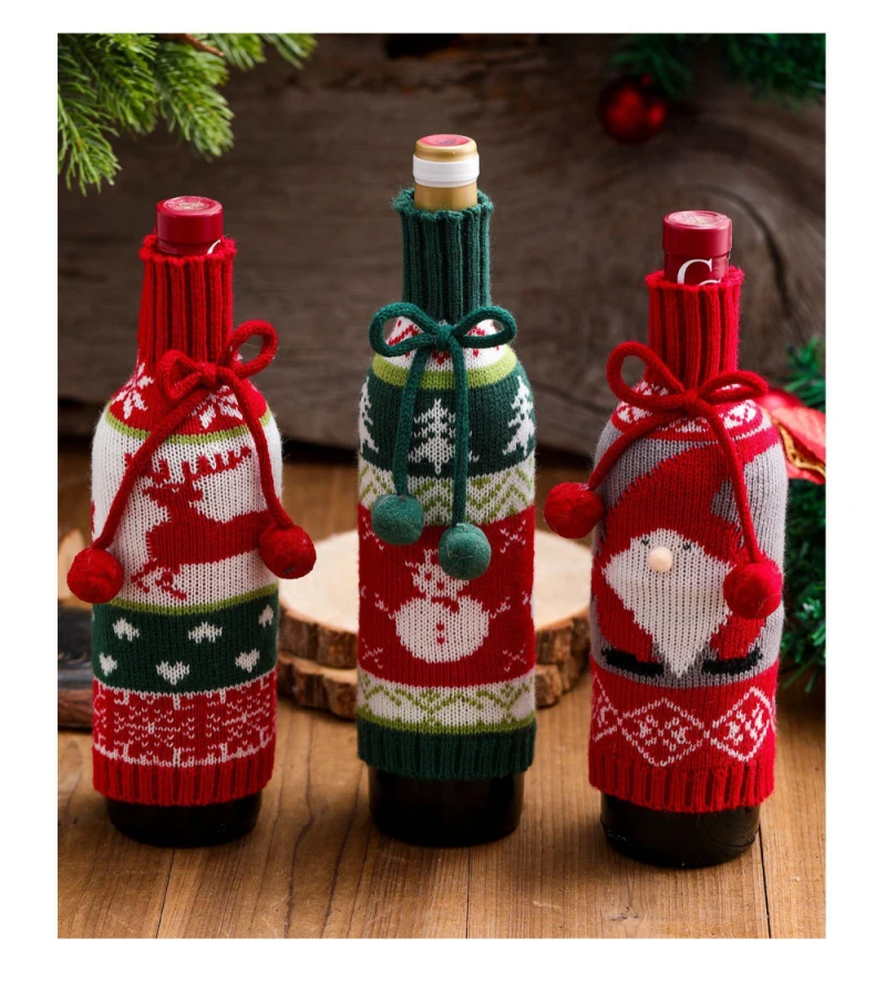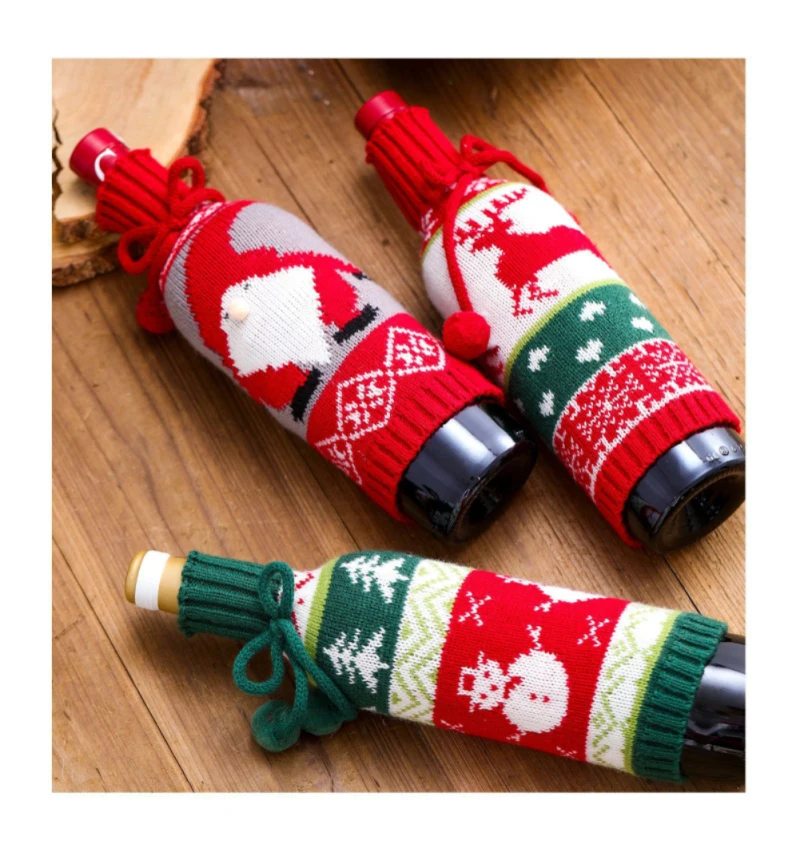 Рождественские Чехлы для винных бутылок, подарочные сумки для шампанского, лось, Санта, снеговик, вязаная упаковочная сумка, украшение для рождественской и новогодней вечеринки