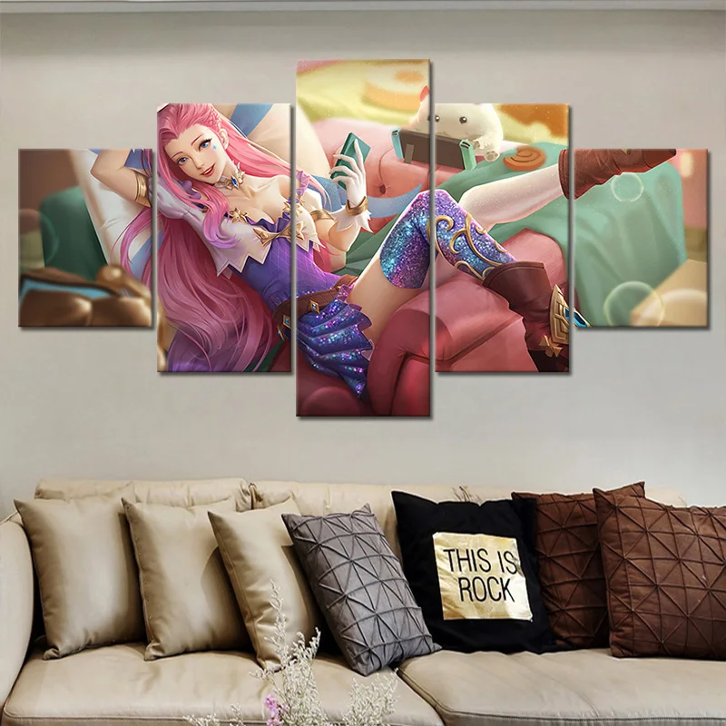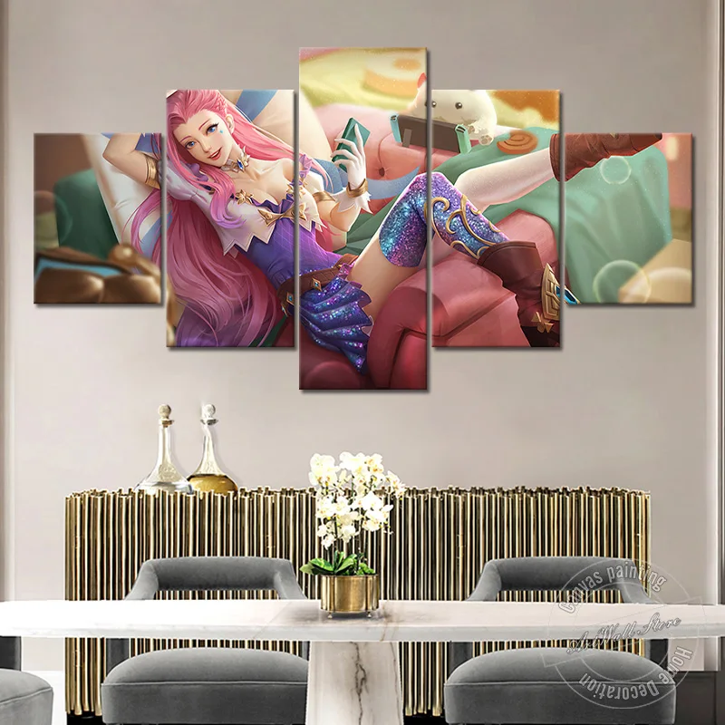 Модульные картины с аниме Akali KDA LOL, 5 панелей, HD принты, плак...