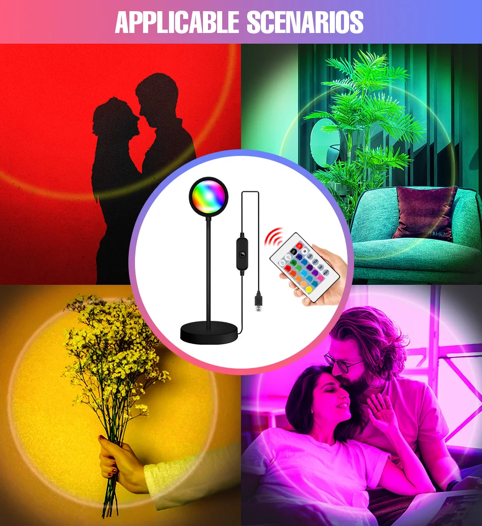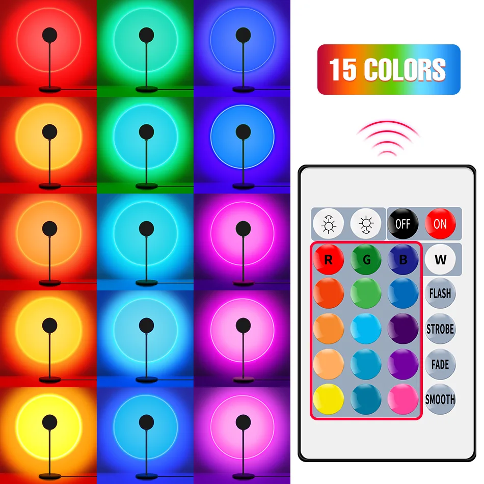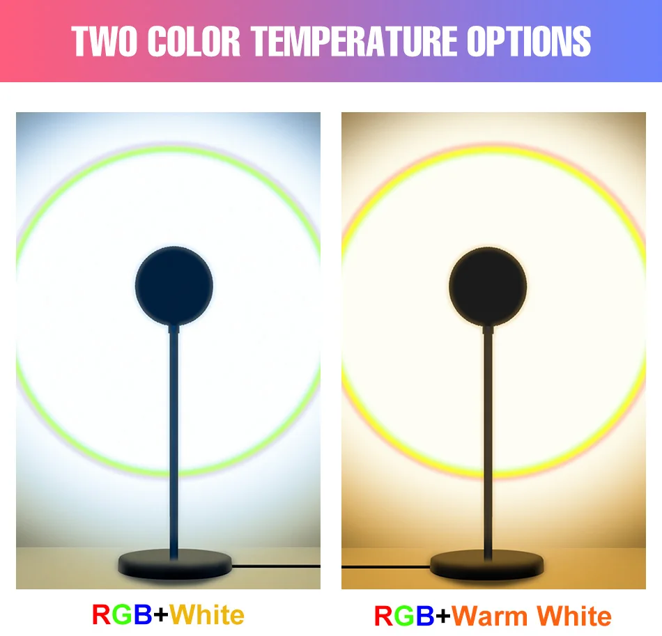 Тип цвета: Закат Желтый/розовые облака/солнце/Радуга/лунный свет розовый/Восход Желтый/Флуоресцентный красный/DIY 15 цветов/RGB+Теплый белый/RGB+Белый