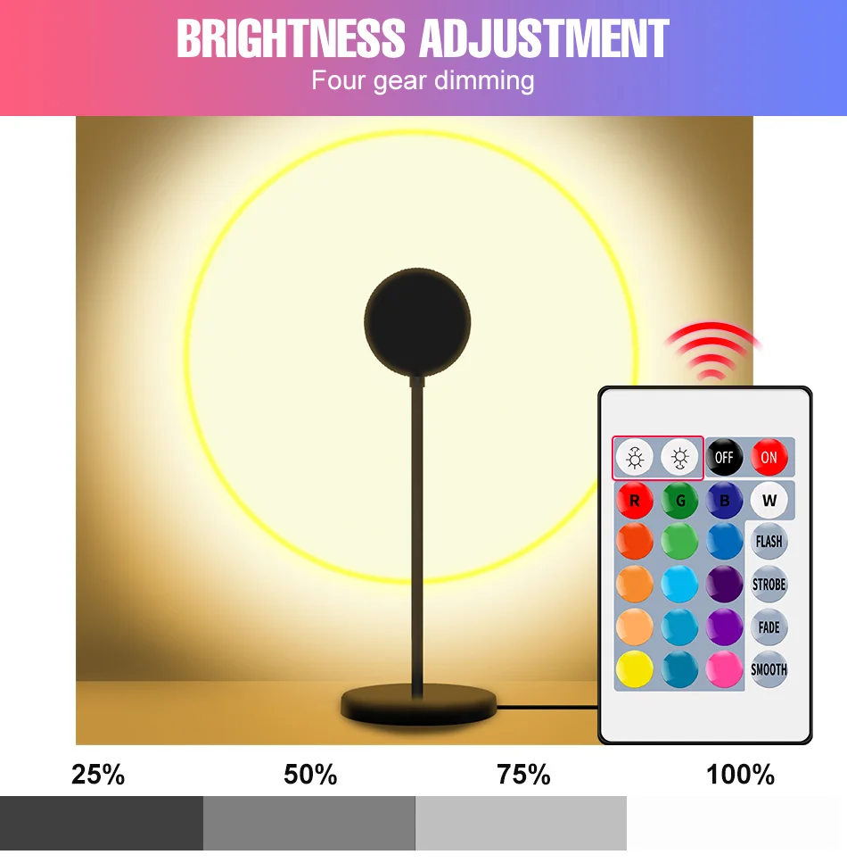 *RGB Стильный светильник заката будет оснащен пультом дистанционного управления. 24-клавишным контроллером Описание: в 15 Виды монохромный и одна туфля белого режим яркости света может быть отрегулировано. Есть четыре уровня регулировки яркости. В четырех динамических режимах Кнопка яркости может регулировать только скорость, а не яркость.